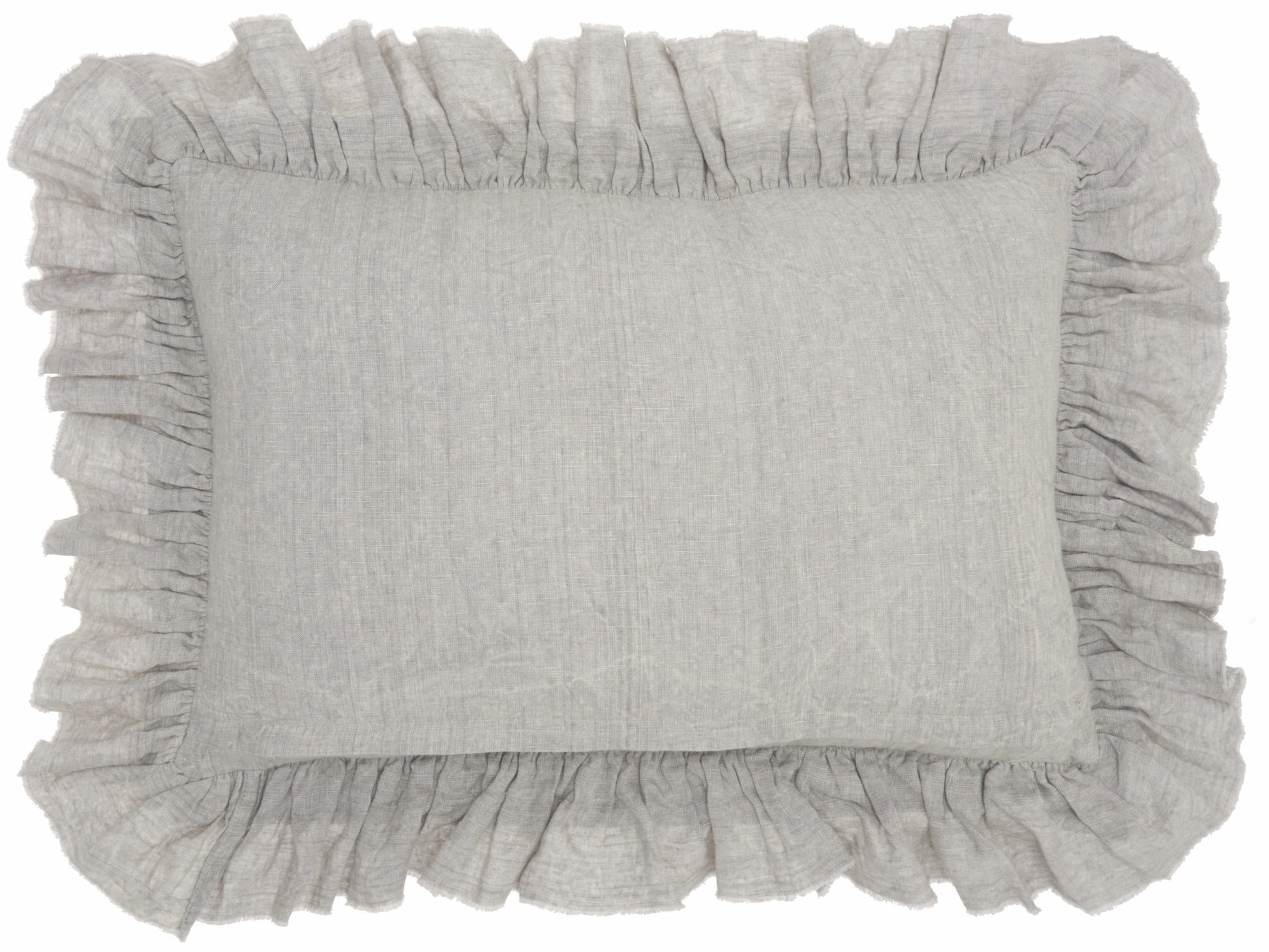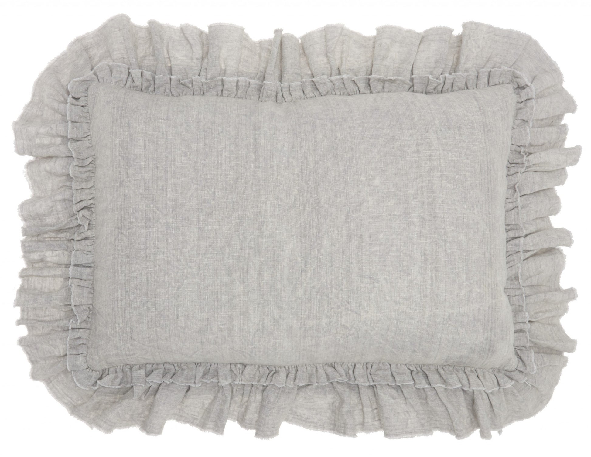 16" X 24" Gray Pillow With Ruffled Edges