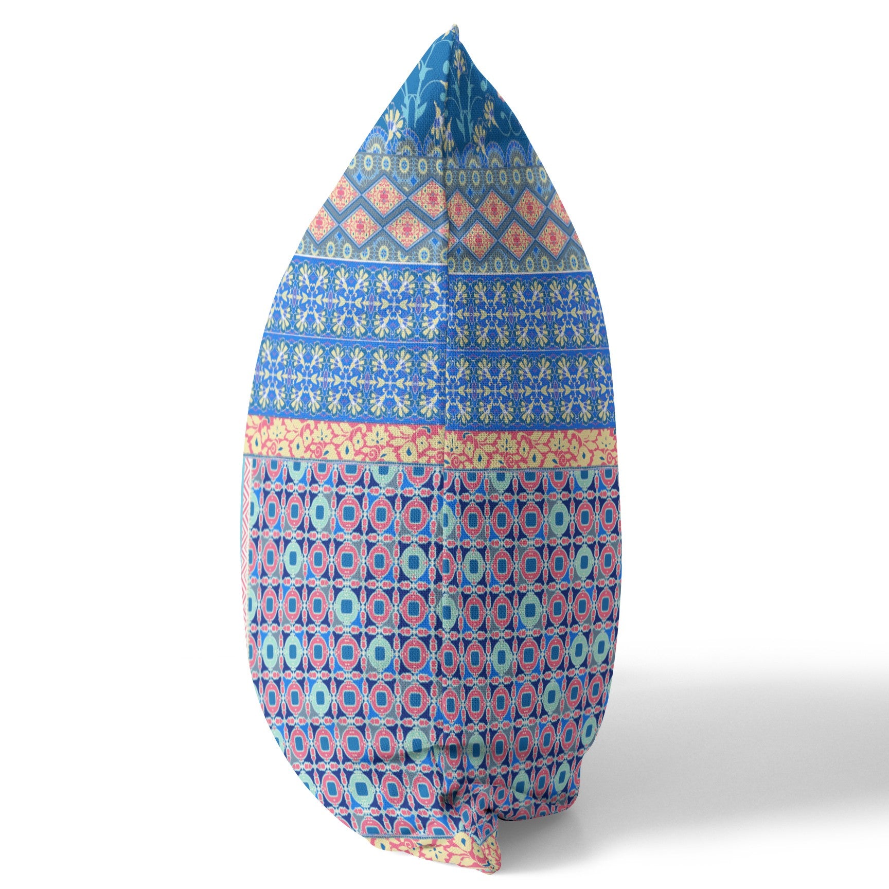 16"X16" Blue And Yellow Microsuede Patchwork Zippered Pillow