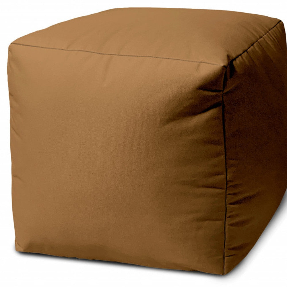 Add a pop of color that is easy to mix and match with most any décor or surroundings with this 17" Cool Warm Mocha Brown Solid Color Indoor Outdoor Pouf Cover. Great to be used as an ottoman or a comfy pillow seat, this stylish pouf is practical and a fashion statement unto itself. Made from sturdy Outdoor PVC, Vinyl Backed Canvas, the chic solid color pouf is filled with a comfy polystryene beads and is UV, Sun, Mold, and Mildew resistant to stand up to the elements and not fade or change colors. This cube is the perfect size and while designed to be used outside and withstand the elements it will look just as great indoors. 17" x 17" x 17".