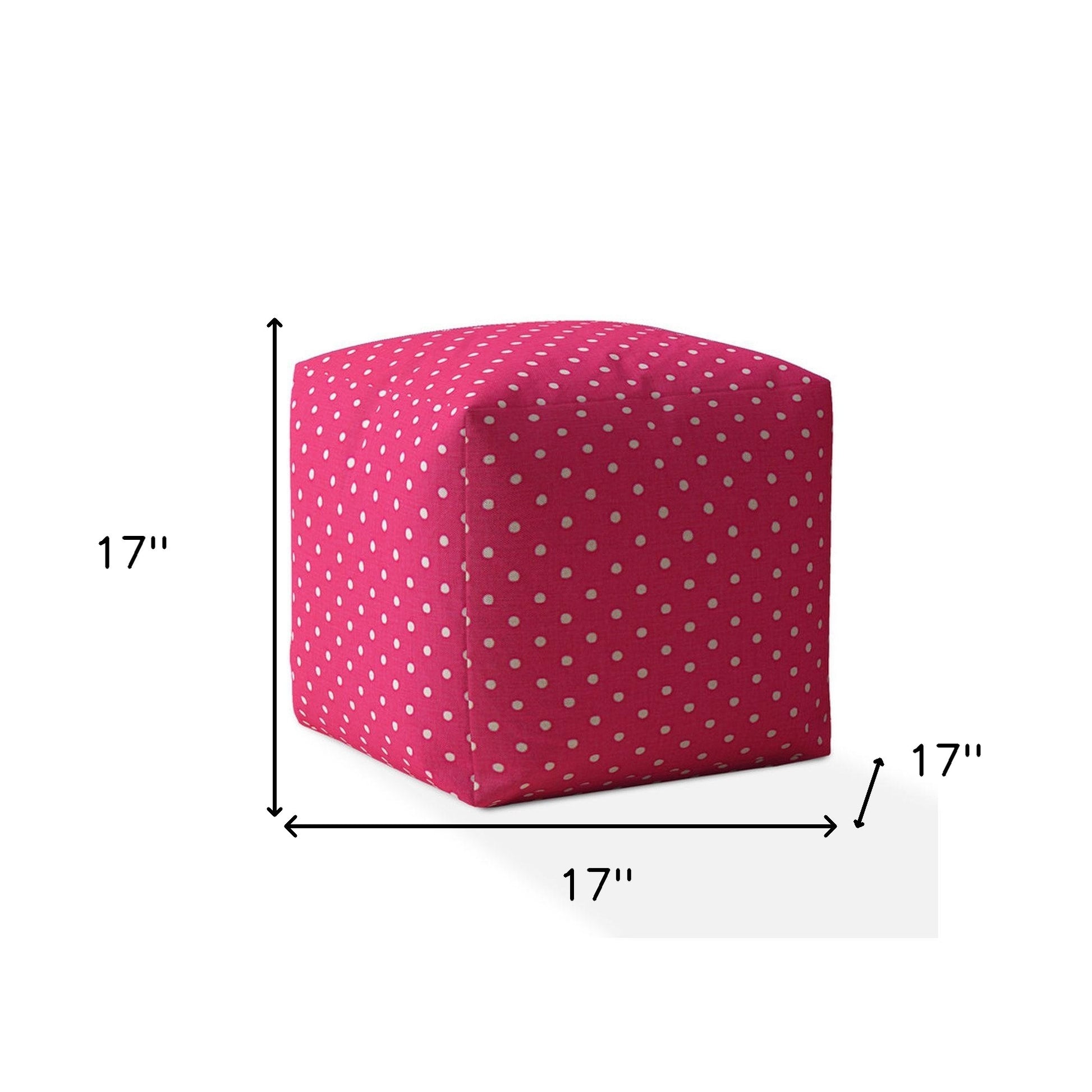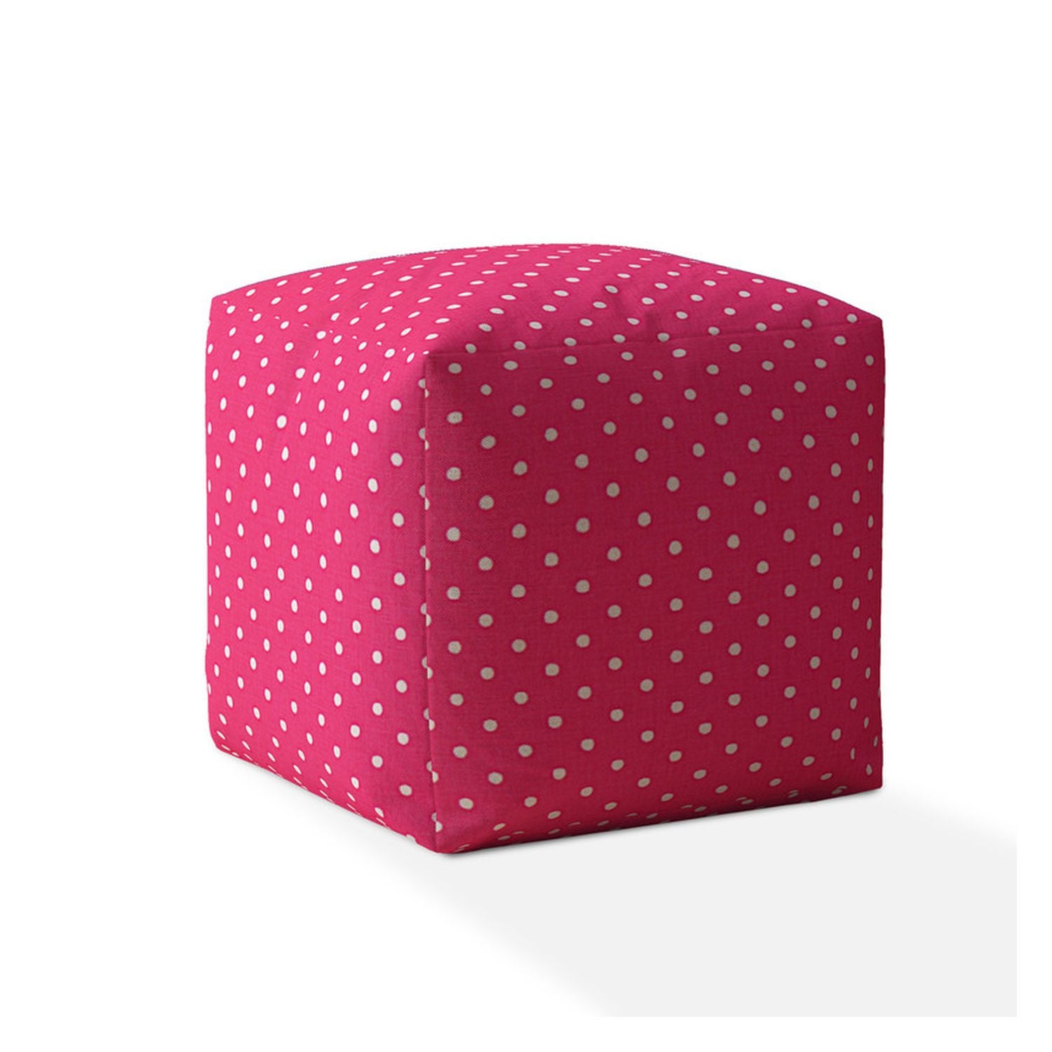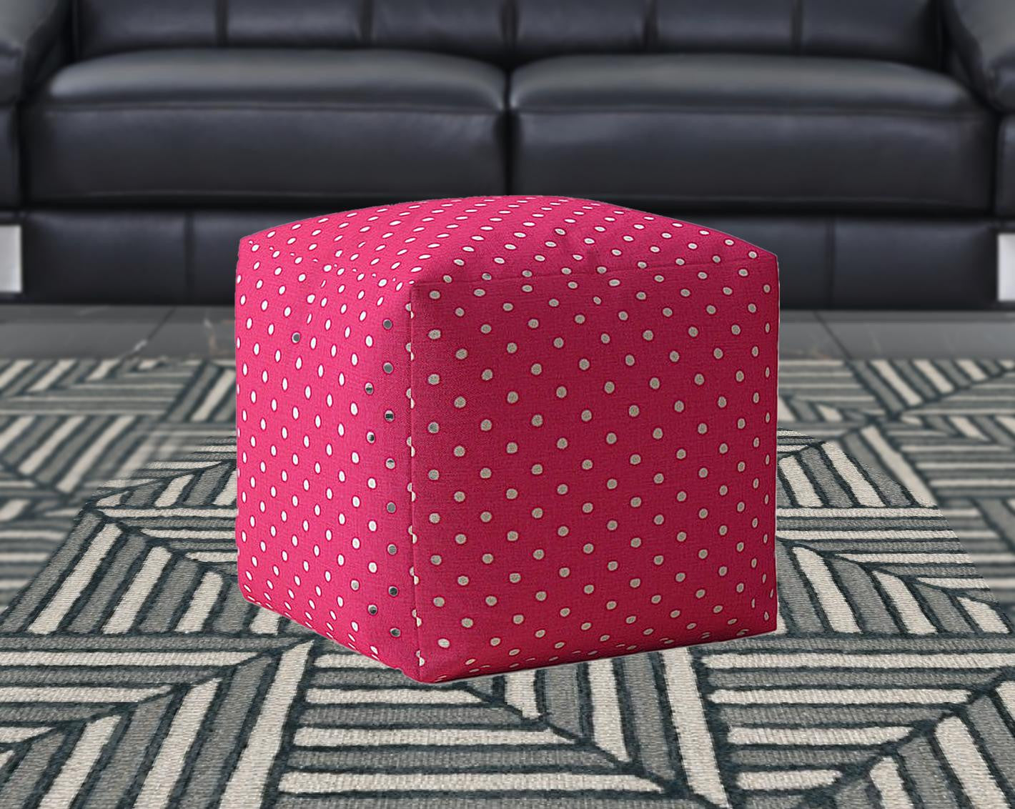 Get ready to relax with this 17" pink cotton polka dots pouf ottoman. Add chic style to your space with this fun pouf that not only looks cool but can be a great foot rest or extra seat when needed. Expertly upholstered with padding and soft cotton in a polka dots pattern, this ottoman is as comfortable as it is good looking. Easy to blend into most any room, a ottoman is a way to add a good looking accent to your space that can also be practical and useful. . 17" H x 17" W x 17" D