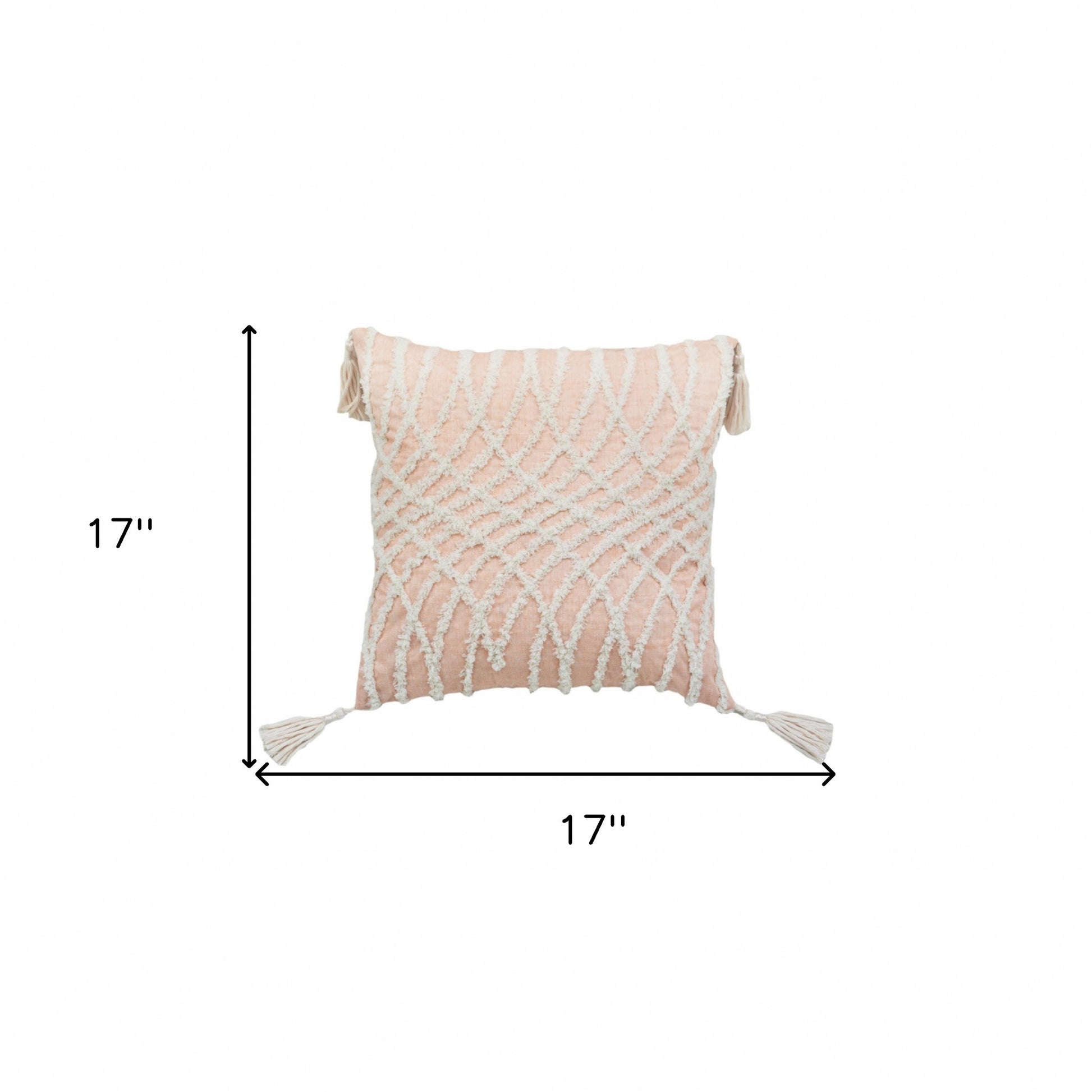 17" X 17" Beige And White Interlocking Zippered Polyester Throw Pillow With Tassels