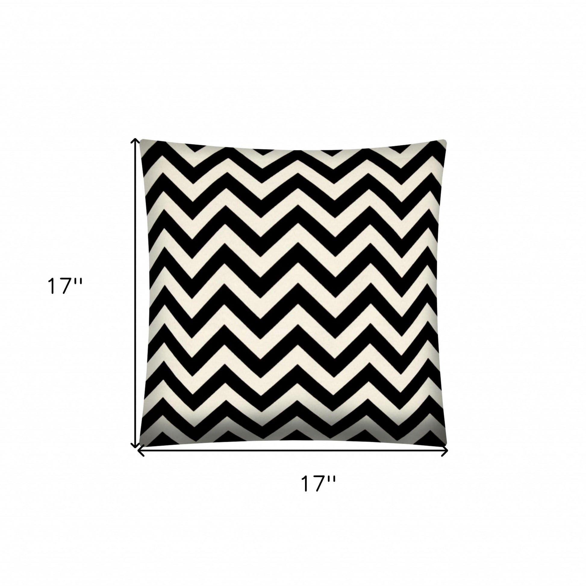 17" X 17" Black And Ivory Zippered Polyester Chevron Throw Pillow Cover