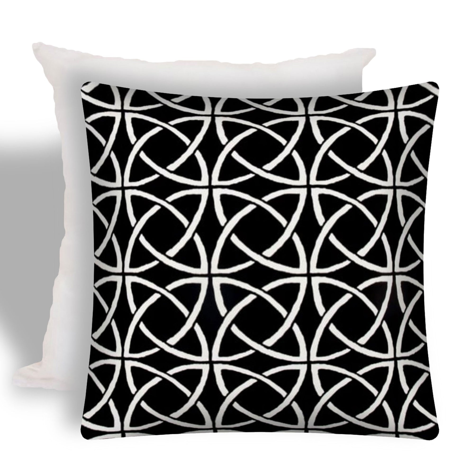 17" X 17" Black And White Zippered Interlocking Throw Indoor Outdoor Pillow