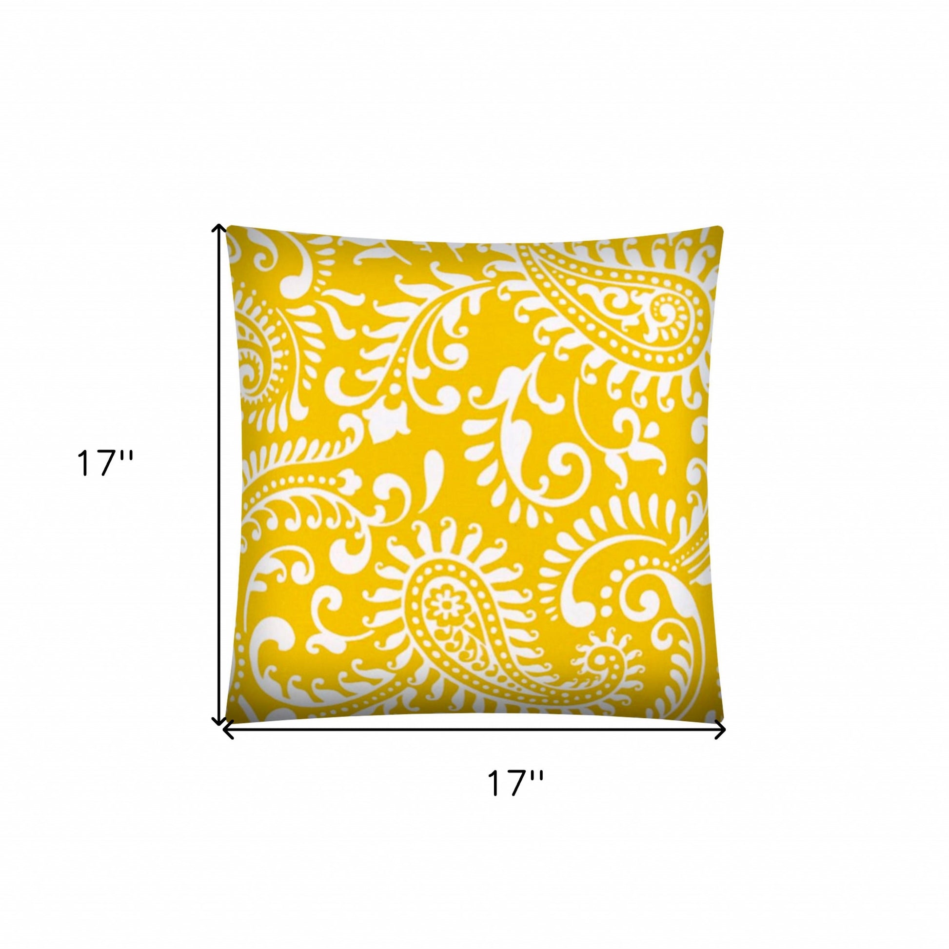 17" X 17" Cream Yellow And White Zippered Polyester Paisley Throw Pillow Cover