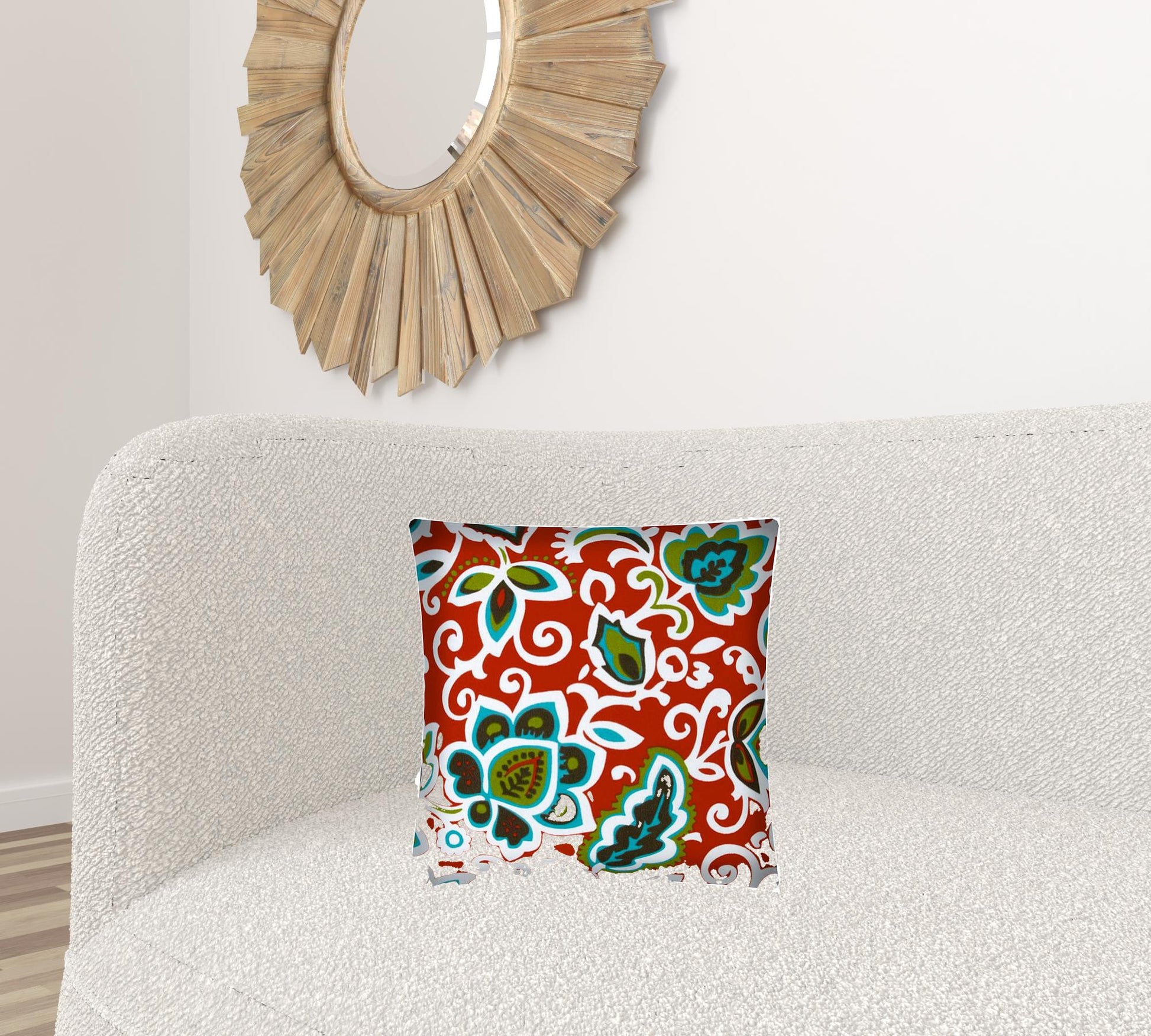 This 17" x 17" red and aqua zippered polyester floral throw pillow cover will add a beautiful decorative accent to your decor. This red and aqua colored decorative accessory is made from high grade polyester that makes it soft and long lasting. Great to use on its own or mix with other decorations for the perfect look. A great decorative accessory for your favorite chair, to accent your sofa, or to use as part of your bed ensemble. 17" H x 17" W x 0.25" D