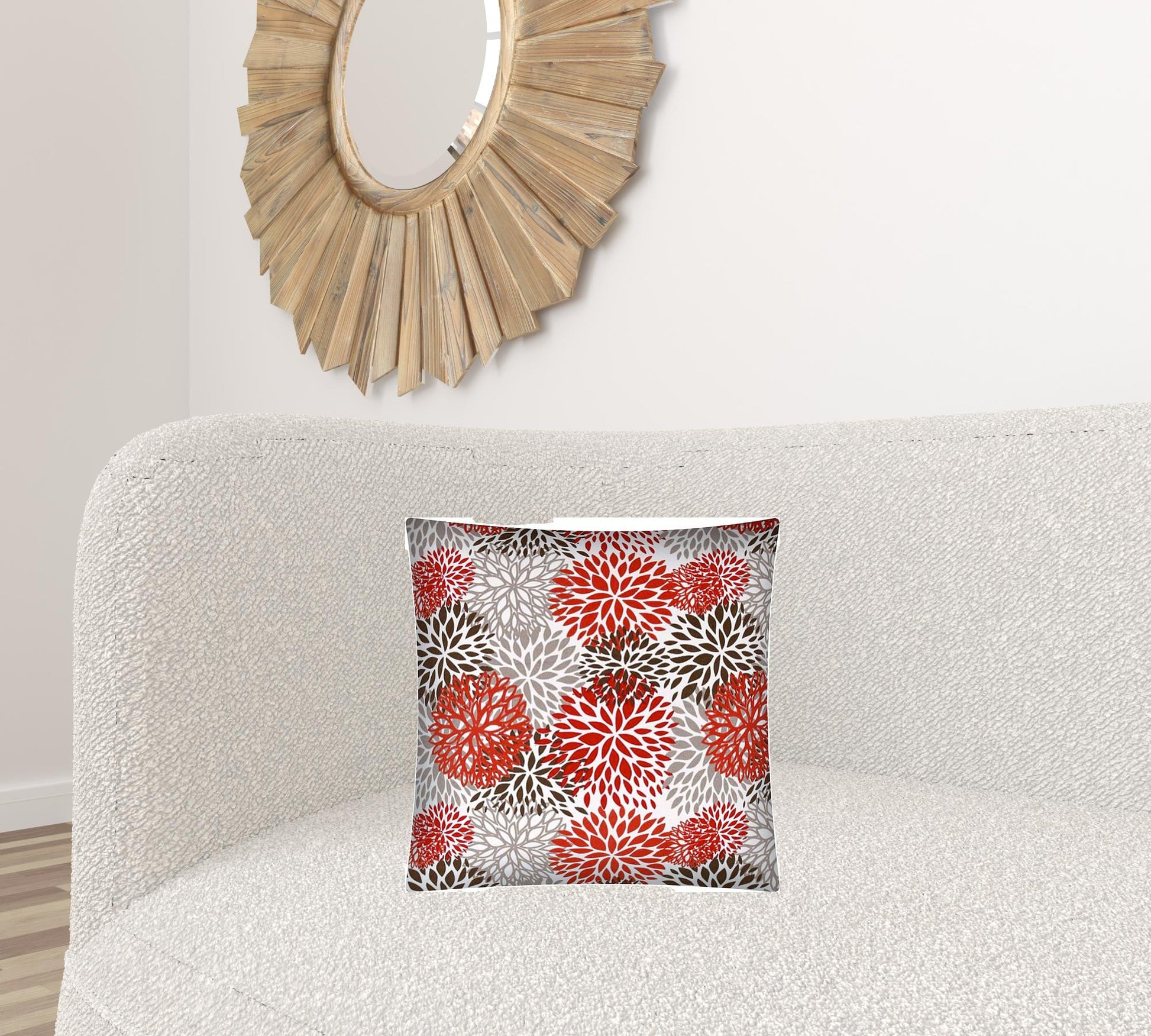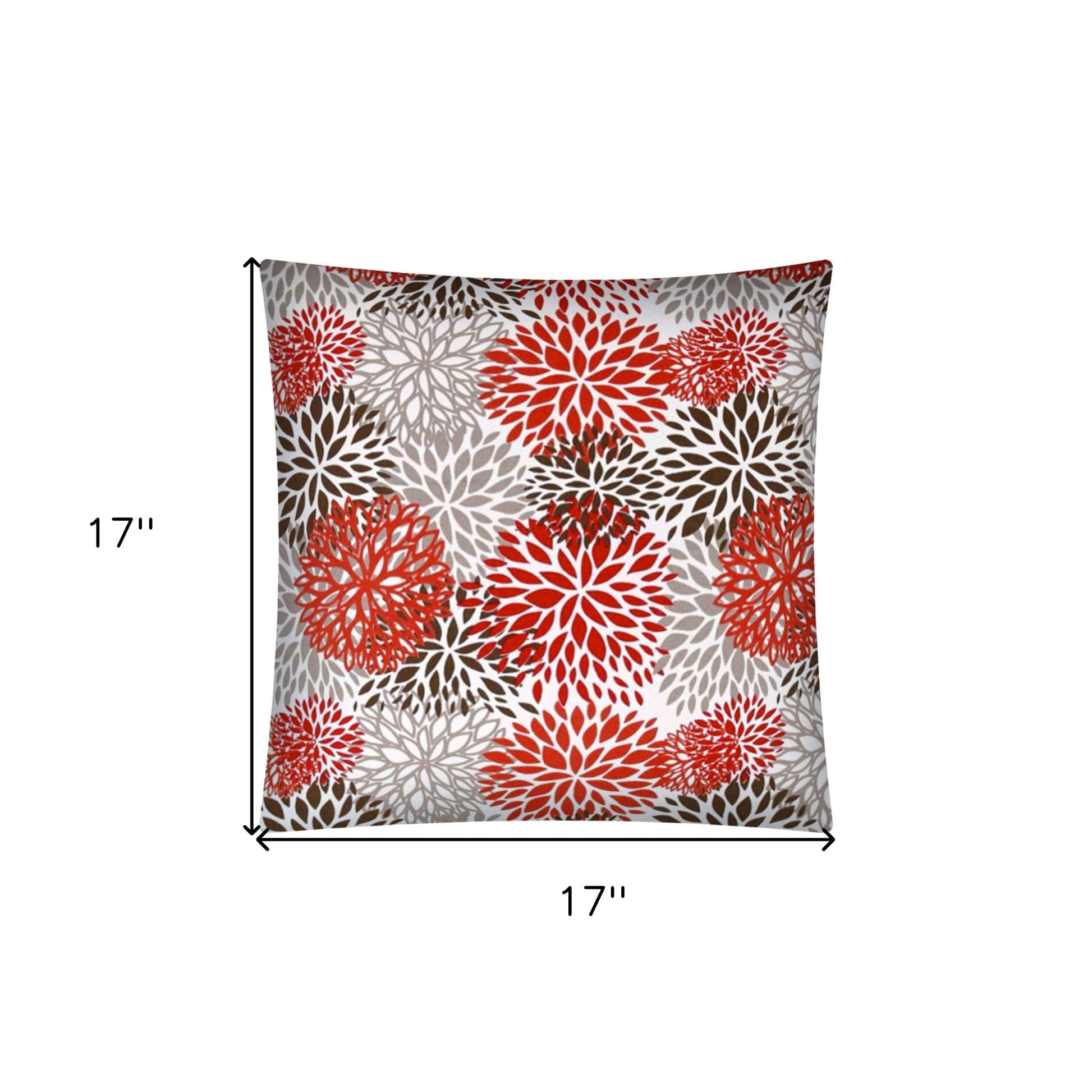 17x17 Red Taupe And White Zippered Polyester Floral Throw Pillow Cover