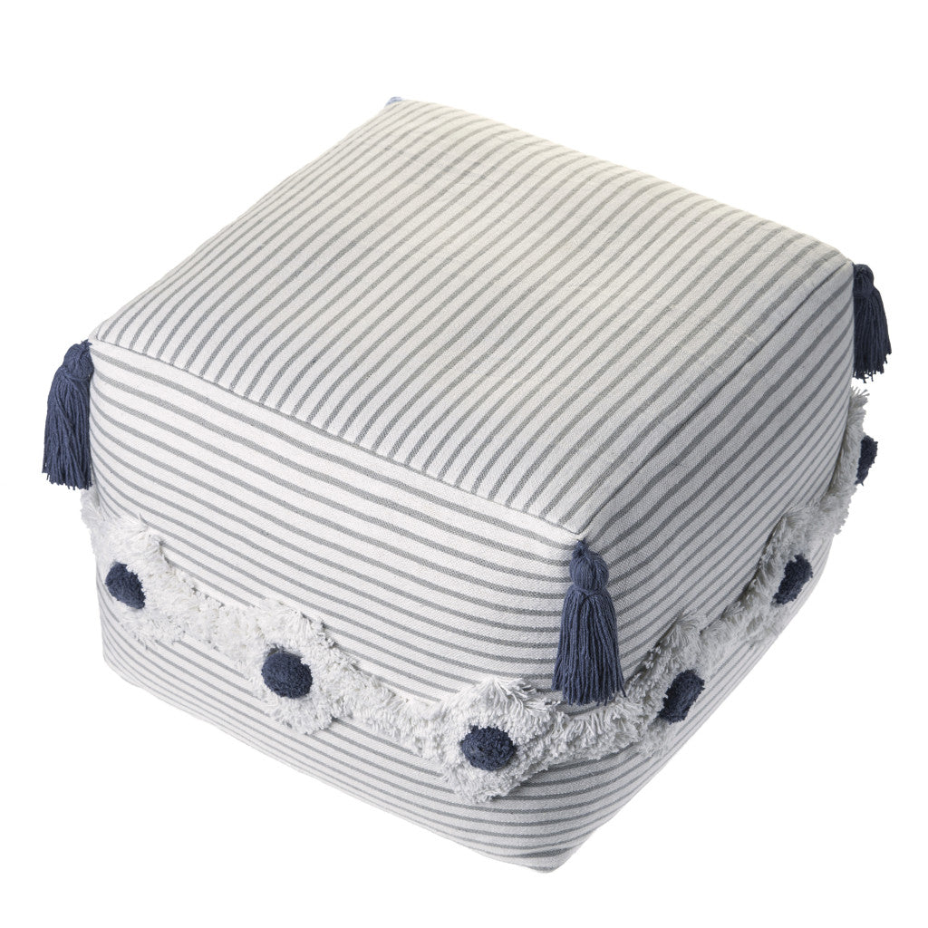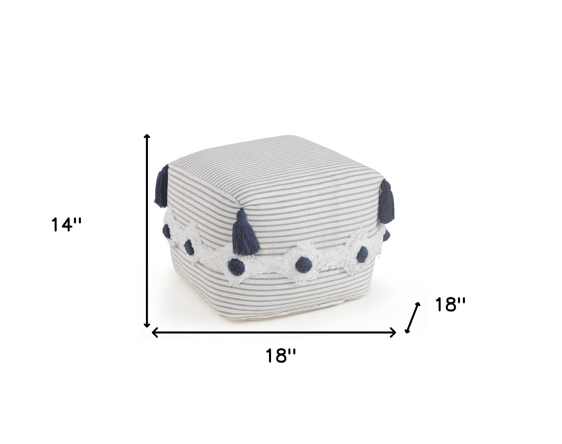 Practicality and fashion mix together with this handy 18-inch gray 100% cotton ottoman. Easy to blend into most any room, a ottoman is a way to add a good looking accent to your space that can also be practical and useful. . 14-inch H x 18-inch W x 18-inch D