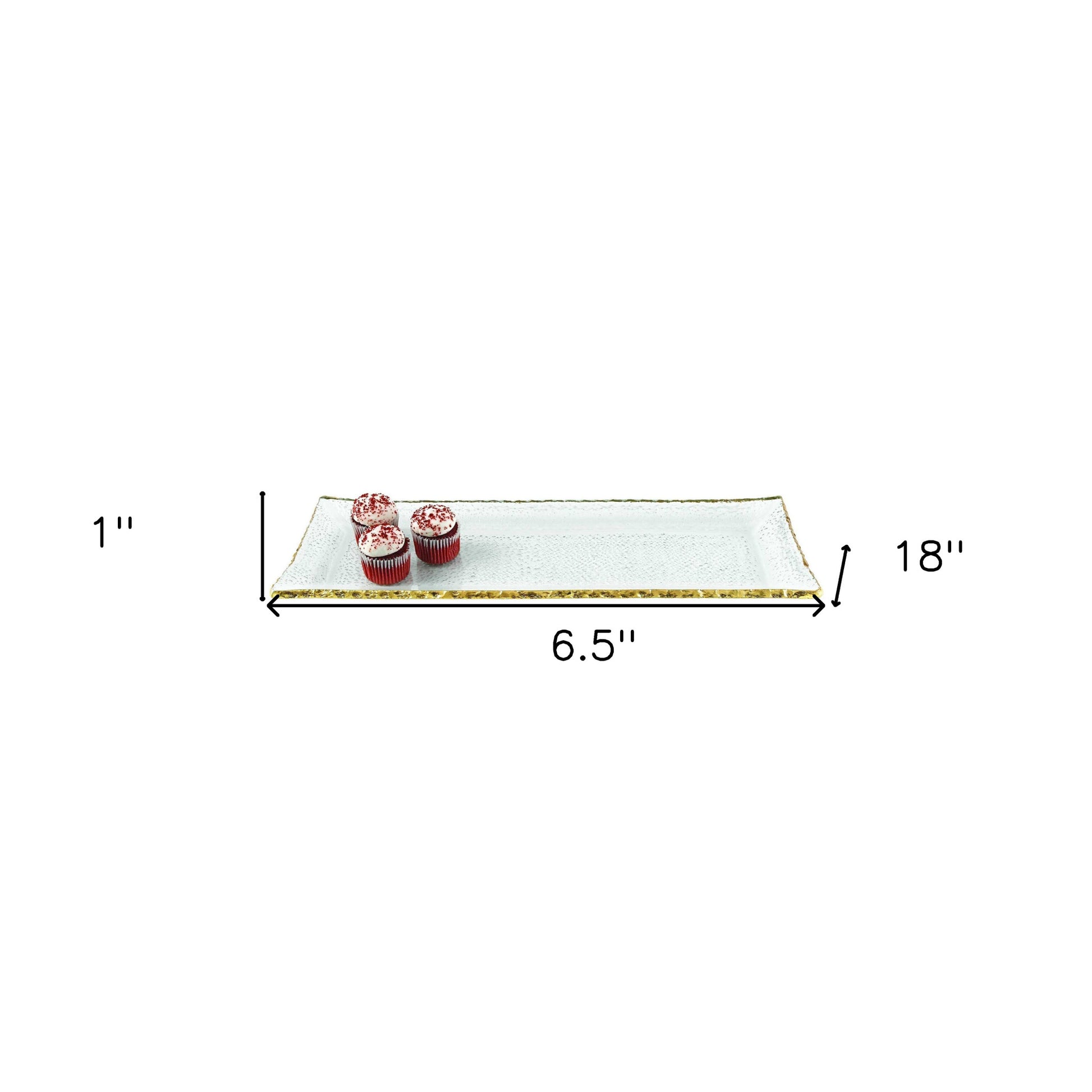 Embellish your kitchen and enhance your cooking with this enchanting platter. The platter is made from high grade glass, giving this platter both looks and durability. This attractive tray is space efficient as well. It will liven up your kitchen, and its gold style and gorgeous color will provide you with something pretty to look at when you serve your delicious food, or drinks. Its components are all natural and environmentally sustainable. There is no better display for your food, appetizers, main or side dishes, breads or desserts. When it comes to measurement, its height is 1”, its width 6.5”, and its depth 18 inches, and it weighs 4 pounds. It has an elegant gold metallic accent as well. It would make a superb wedding, engagement, or housewarming gift. Enjoy the looks and functionality, as well as the magnificent display while serving and hosting your guests.