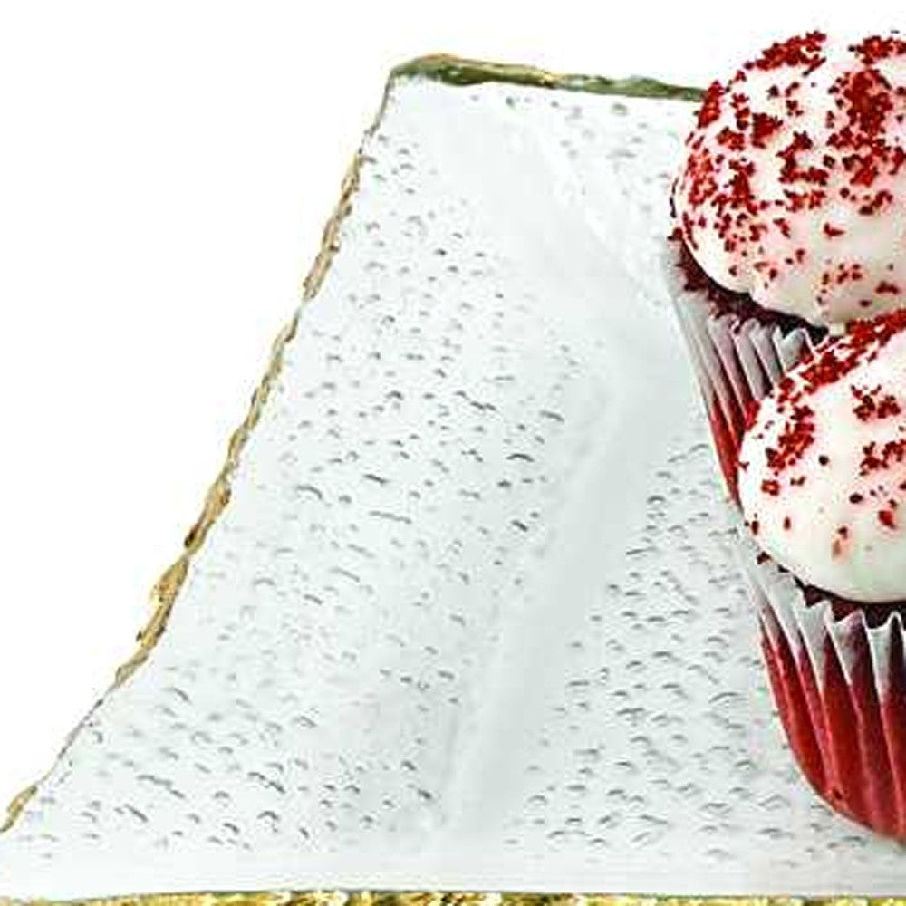 18 Mouth Blown Rectangular Edge Gold Leaf Serving Platter Or Tray