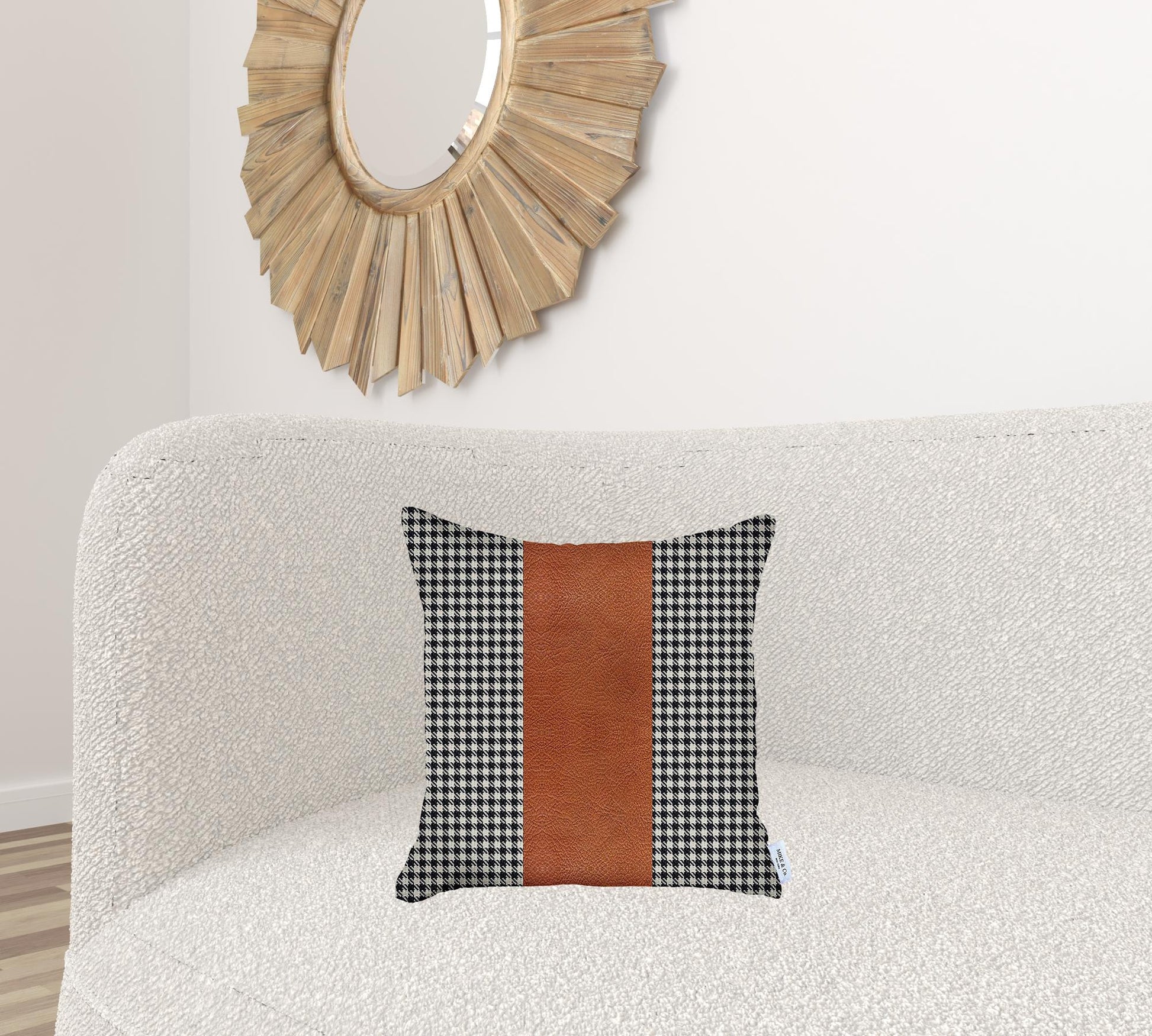 18" X 18" Black And Brown Houndstooth Zippered Handmade Polyester Throw Pillow Cover