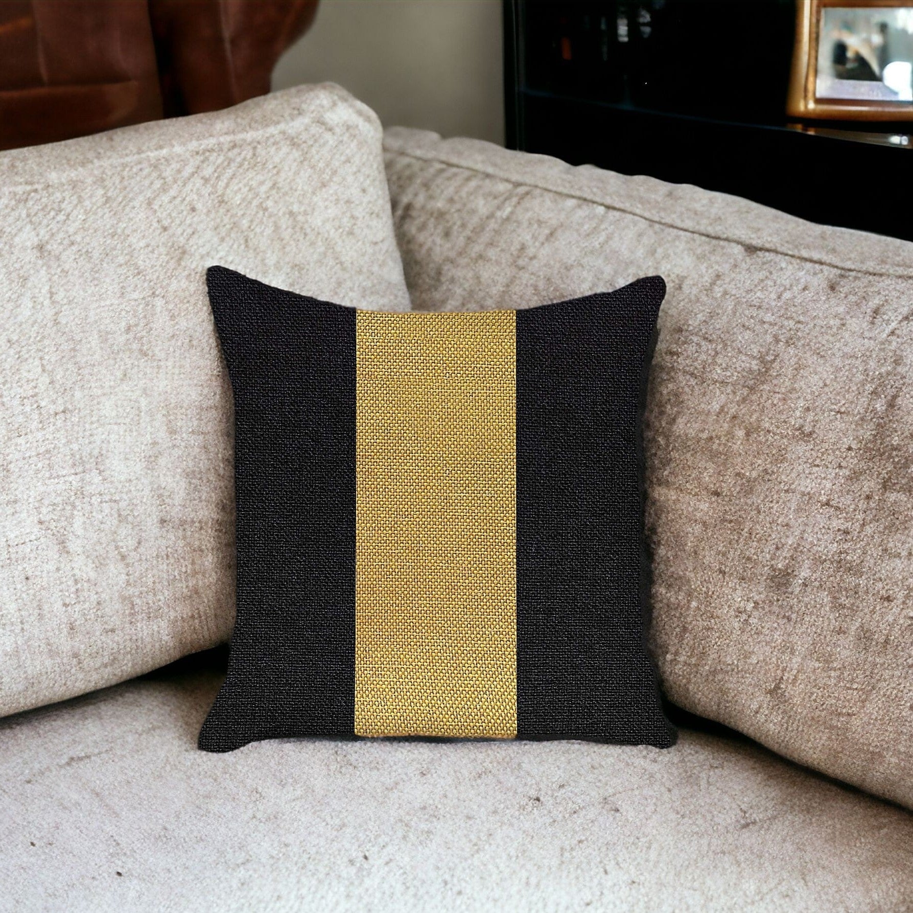 18" X 18" Black And Yellow Geometric Zippered Handmade Polyester Throw Pillow Cover