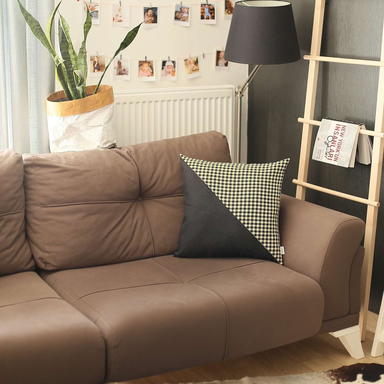 Unique and decorative, this comfortable 18" x 18" black and yellow houndstooth zippered handmade polyester throw pillow cover will leave a lasting impression. This black and yellow hued, accent pillow cover, represents quality construction, expertly made from durable polyester that is not only long lasting but soft to the touch as well. For anyone that loves to decorate or accent their space with color and texture. A great decorative accessory for your favorite chair, to accent your sofa, or to use as part of your bed ensemble. 0.59" H x 18" W x 18" D