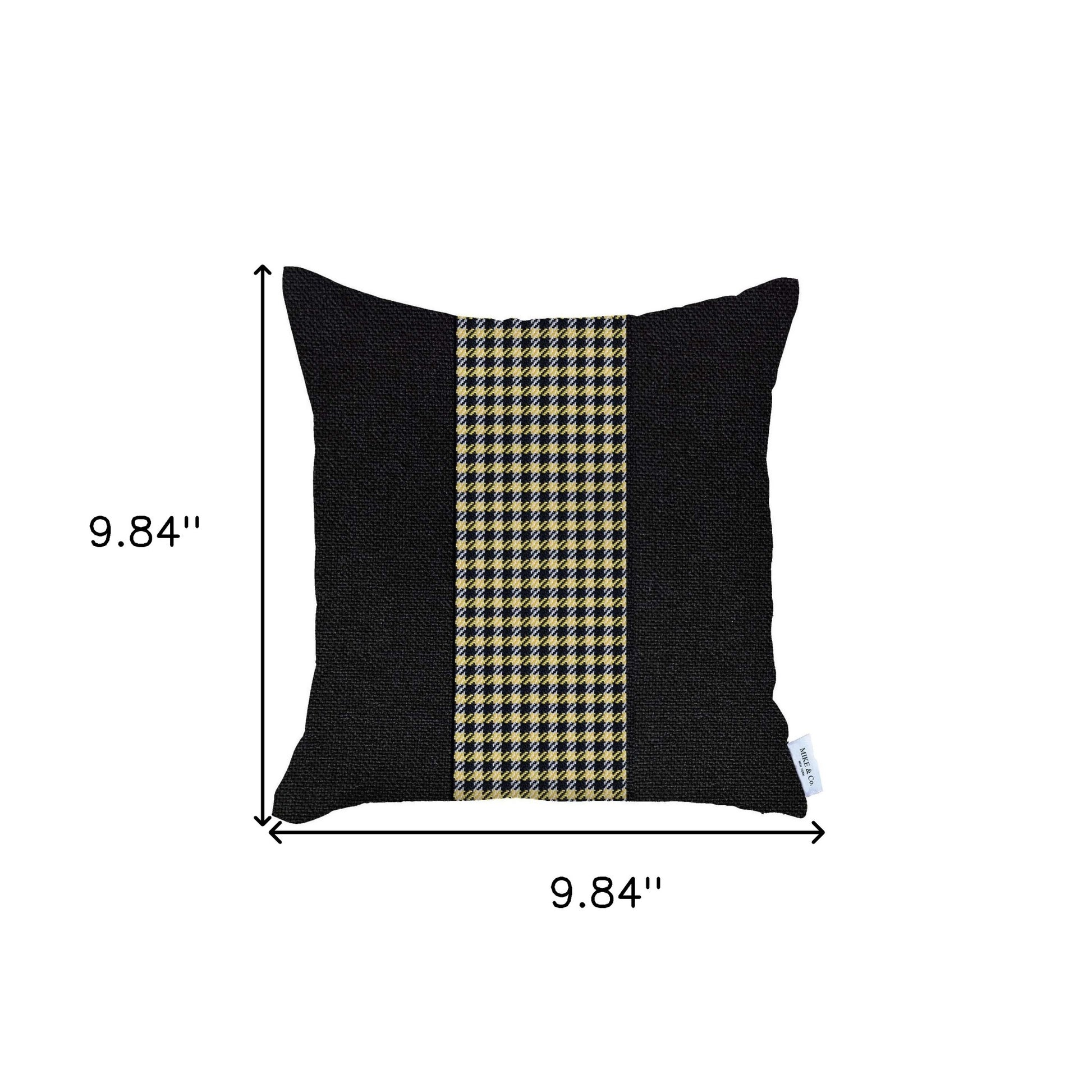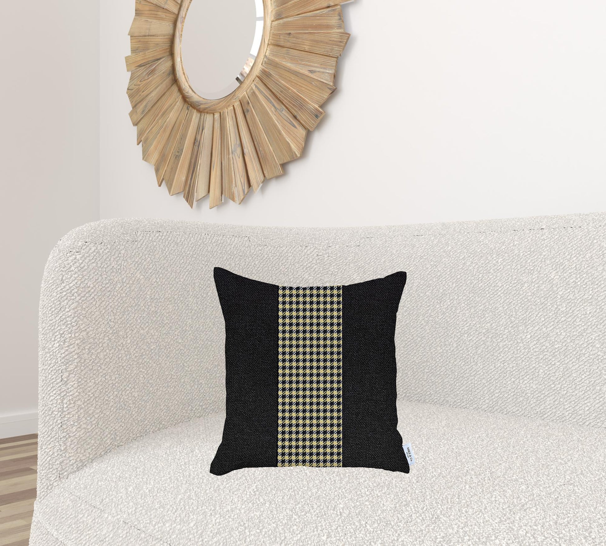 18" X 18" Black And Yellow Houndstooth Zippered Handmade Polyester Throw Pillow Cover