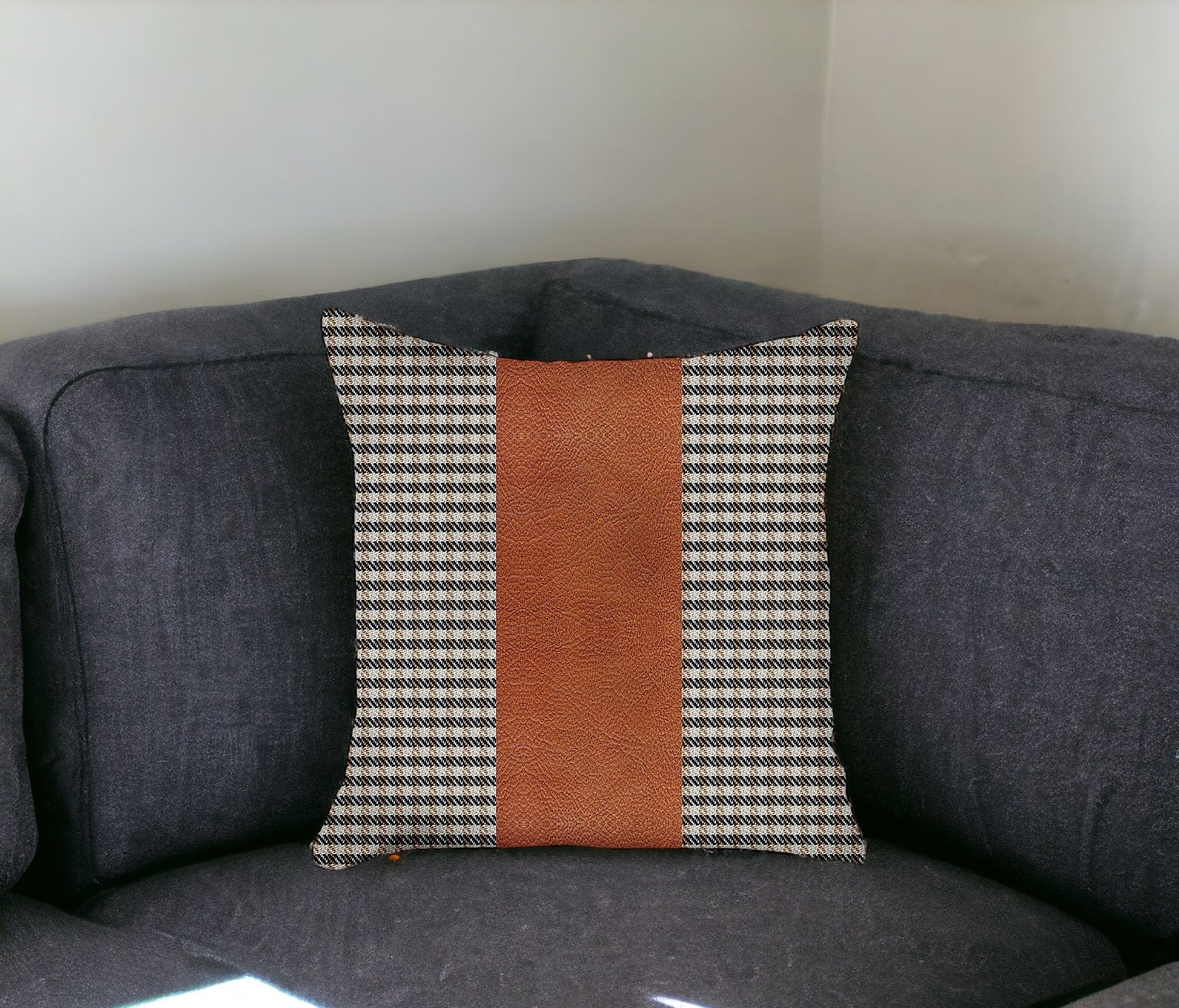 18" X 18" Brown Houndstooth Zippered Handmade Polyester Throw Pillow Cover