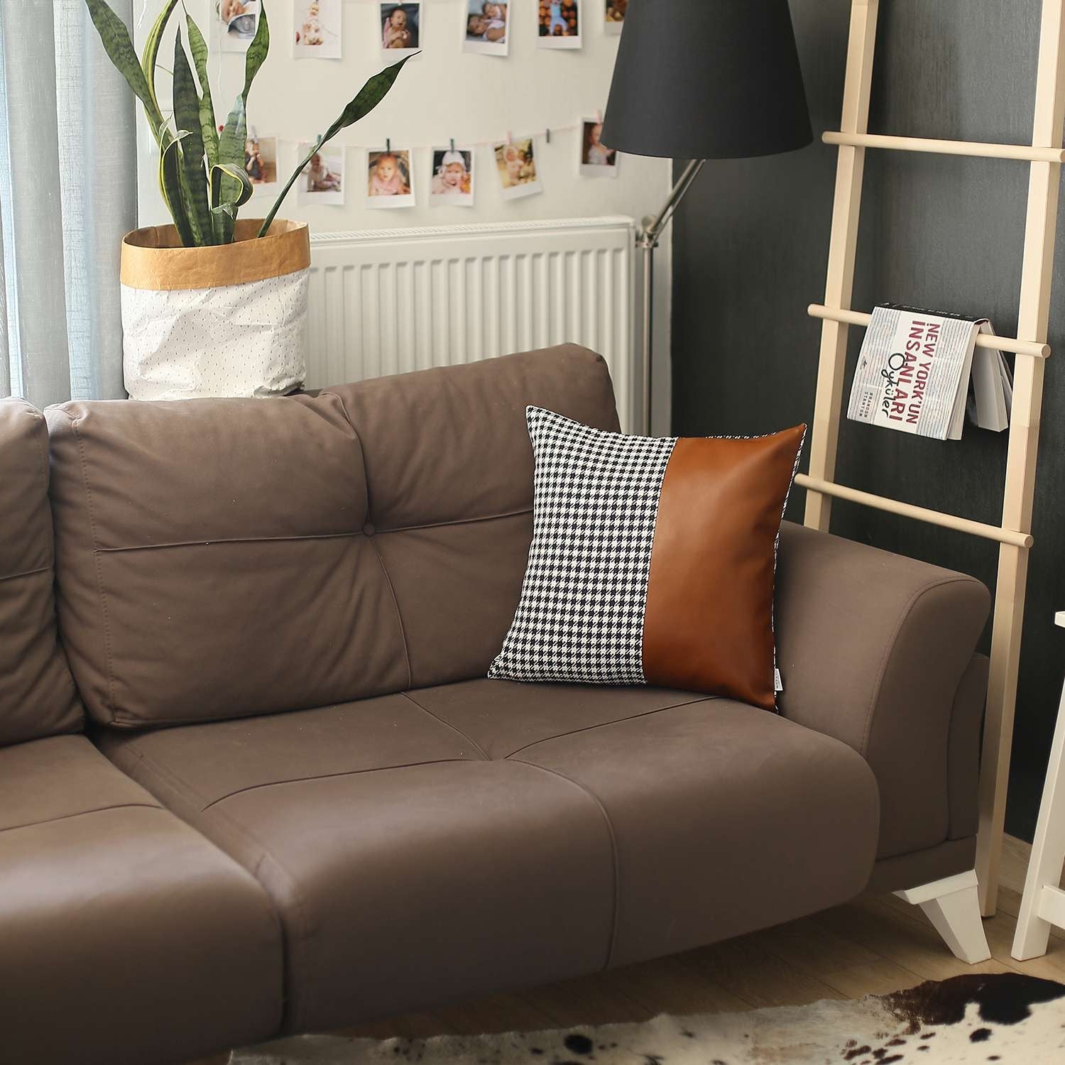 18" X 18" Brown Houndstooth Zippered Handmade Polyester Throw Pillow Cover