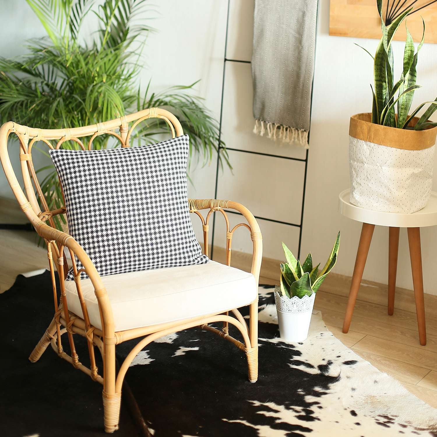 18" X 18" Grey Houndstooth Zippered Handmade Polyester Throw Pillow Cover