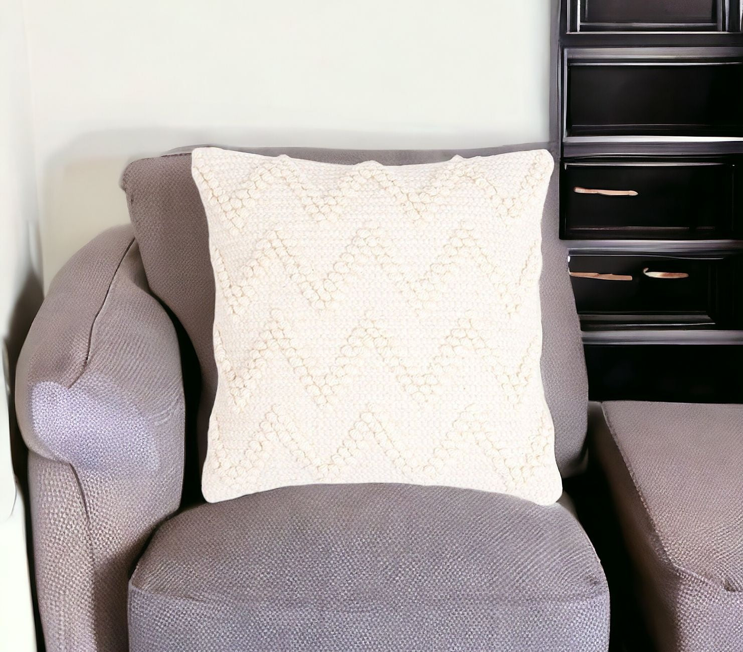18" X 18" Off White Chevron Cotton Blend Pillow Cover With Texture