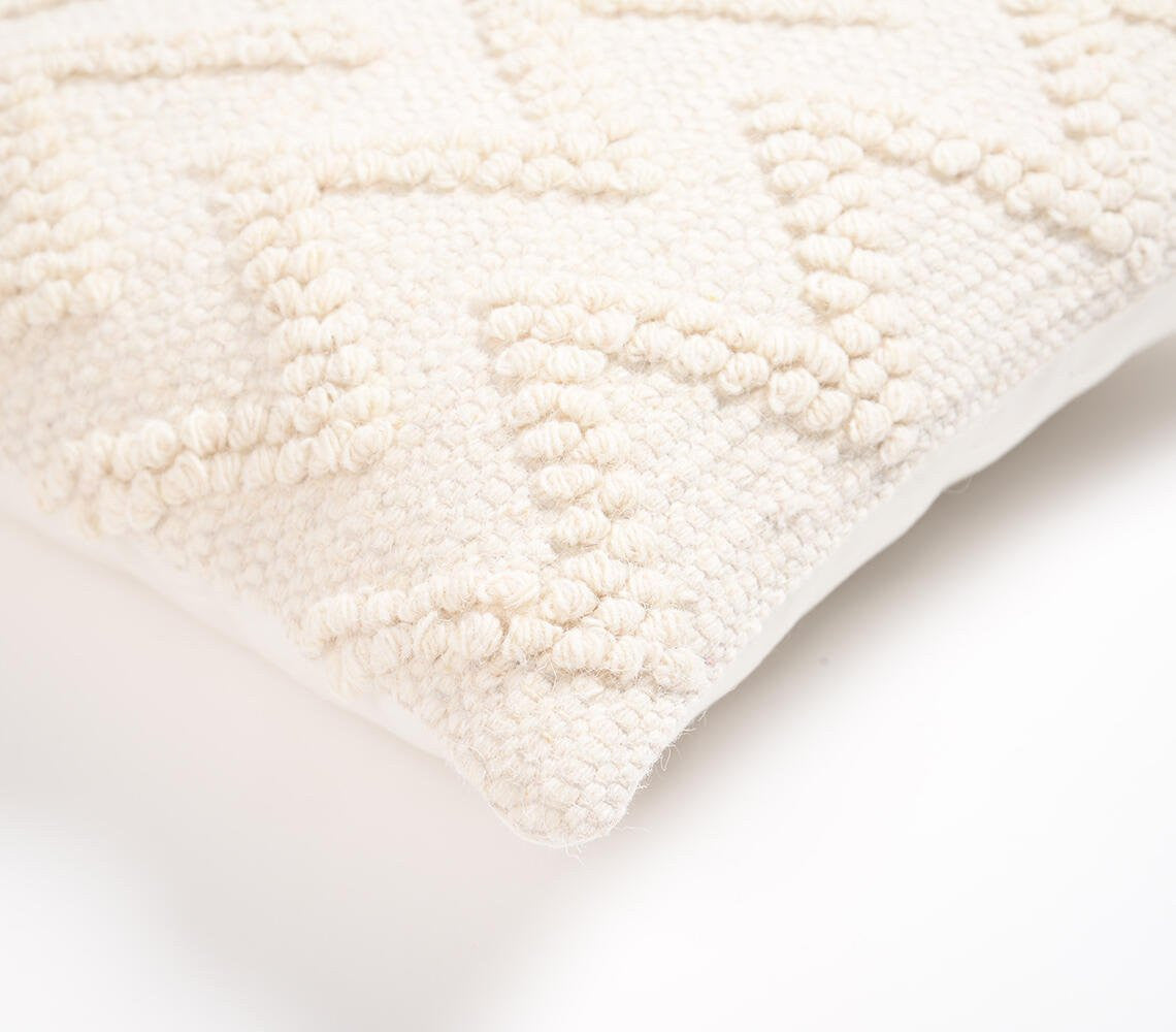 Unique and decorative, this comfortable 18-inch x 18-inch off white chevron cotton blend zippered pillow cover with texture will leave a lasting impression. This soft and durable decorative pillow cover is expertly made of high grade, long lasting cotton blend in a off white coloration. Fun and decorative tufts add some high end and hand-crafted textural designer touches. Decorative throw pillows not only add color and dimension to your space but can be comfy and supportive when you are lounging and cuddling as well. Decorative pillows are a great way to change up the look and feel of your space easily and quickly. 18-inch H x 18-inch W x 0.1-inch D