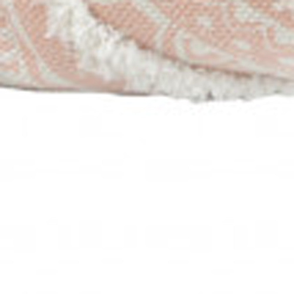18" X 18" Peach And White Geometric Zippered Polyester And Cotton Blend Throw Pillow With Tassels