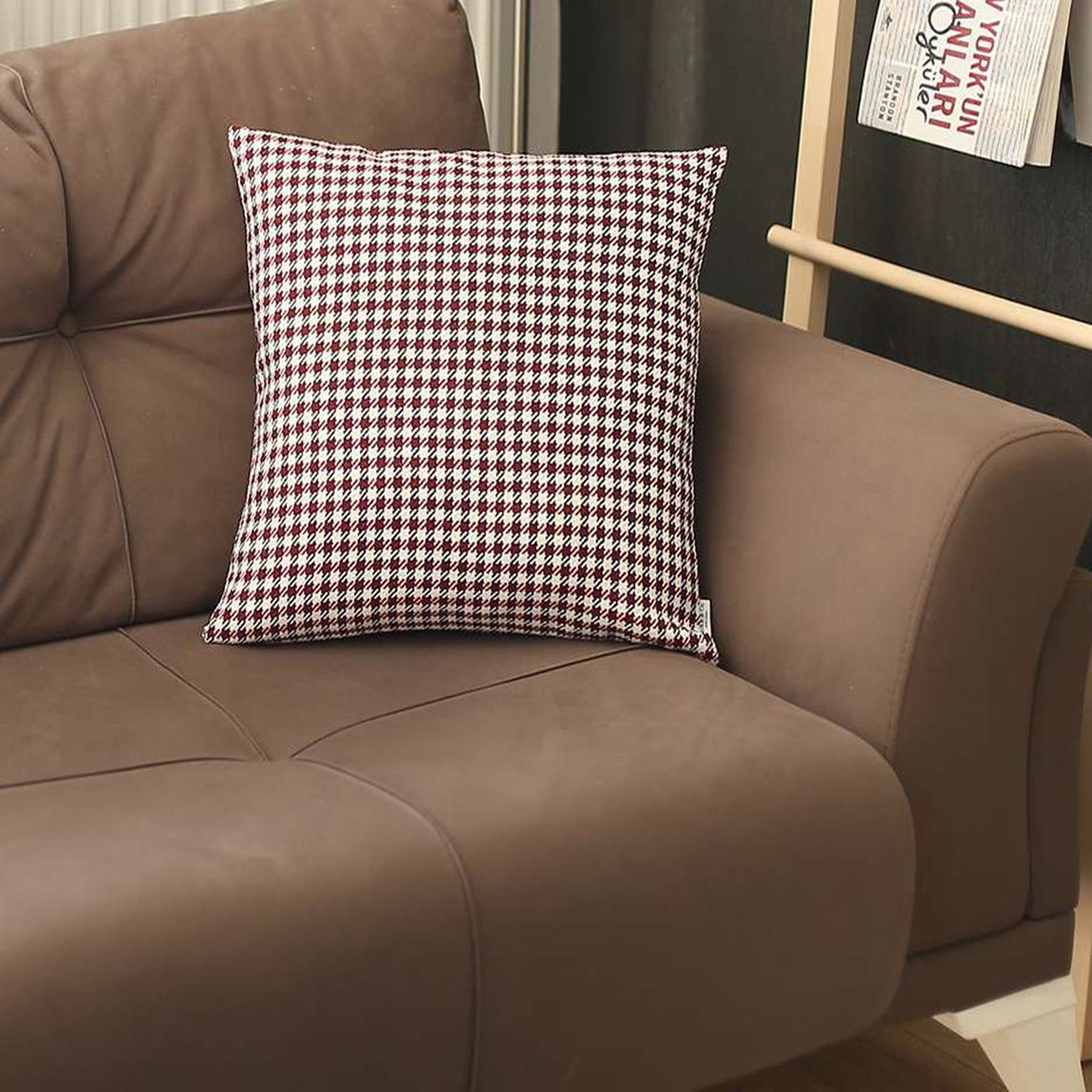 18" X 18" Red Houndstooth Zippered Handmade Polyester Throw Pillow Cover