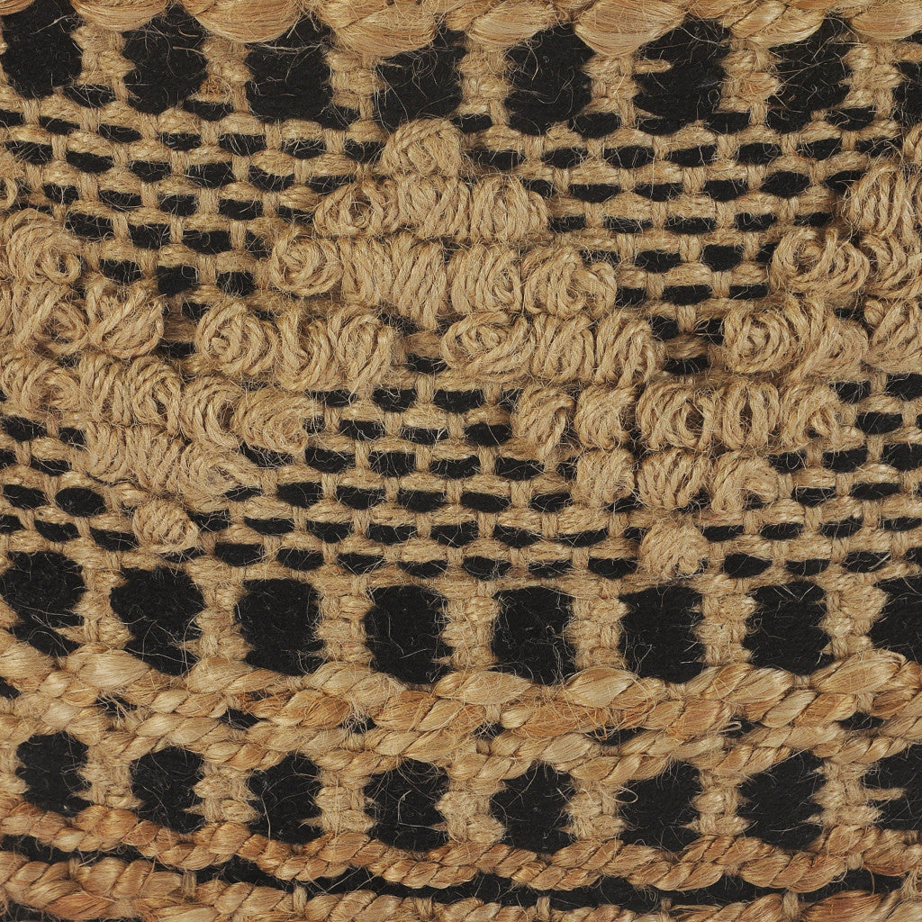 Practicality and fashion mix together with this handy 18-inch x 18-inch x 14-inch tan pouff. Easy to blend into most any room, an ottoman is a way to add a good looking accent to your space that can also be practical and useful. Made with a beautiful jute upholstery material and featuring a geometric pattern, this pouff is a perfect addition to any floor seating arrangement. The material breakdown of 70% jute and 30% cotton ensures durability and comfort, while the tan color adds a touch of warmth to your décor. Bag size is 18-inch, making it versatile and easy to move around. 14-inch H x 18-inch W x 18-inch D
