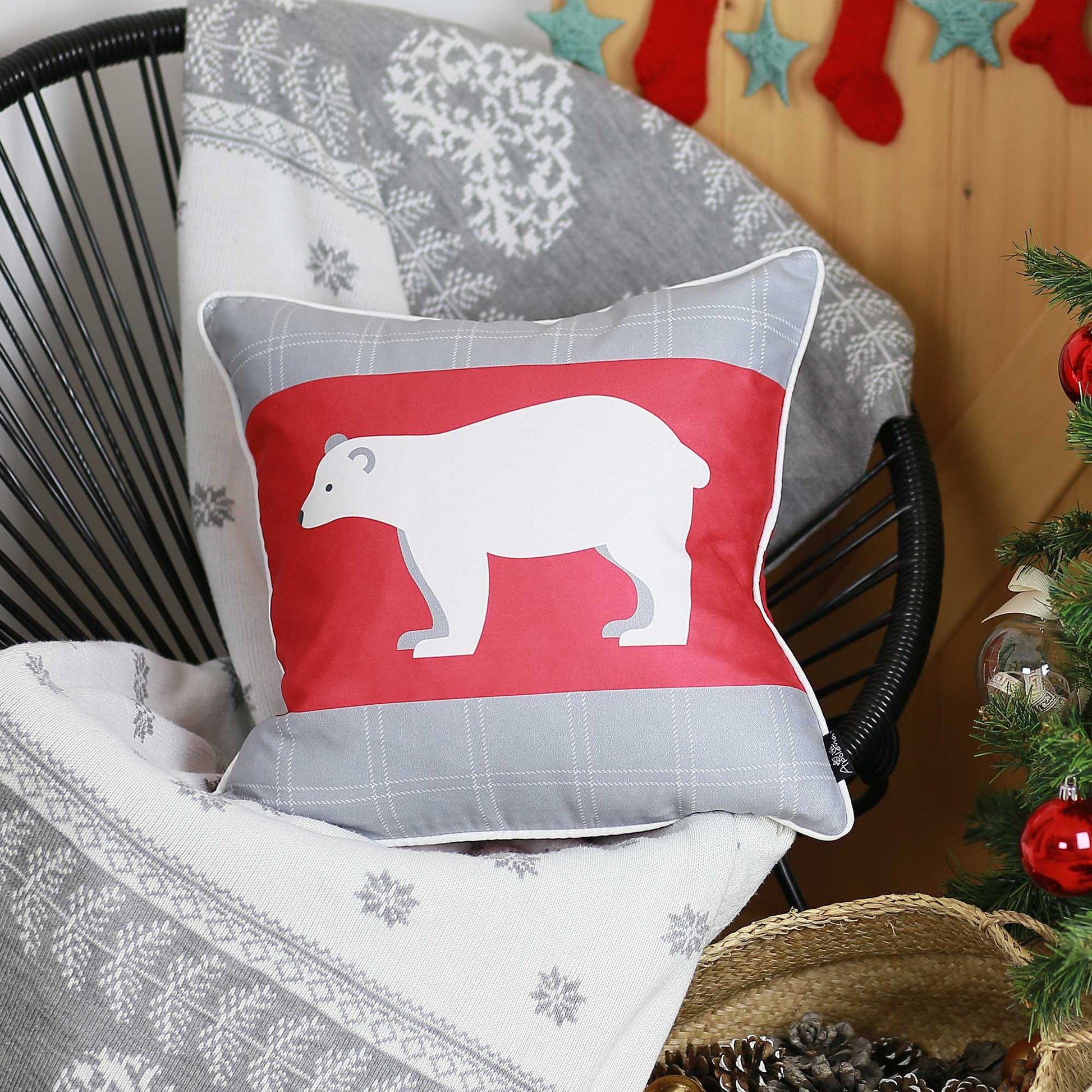 Easily update and refresh your home with Christmas Bear Printed Decorative Throw Pillow Cover. Instant upgrade of any space is possible with throw pillow covers made with luxurious brushed fabric. Distinct and colorful patterns will add hue and style to any room. Hidden zipper closure provides a clean and seamless look all the way around. 100% Polyester Brushed with very soft and luxurious hand feel. Our fabrics are dyed with OEKO-TEX? Standard 100 certified products without any harmful substances. 18" X 18" (45cm X 45cm) Hidden zipper closure. High quality digital printing in the front, back side is solid natural color. White piping all around. Inserts are not included, can be purchased separately. Machine Wash Cold Separately, Gently Cycle Only, No Bleach, Tumble Dry Low, Do Not Iron