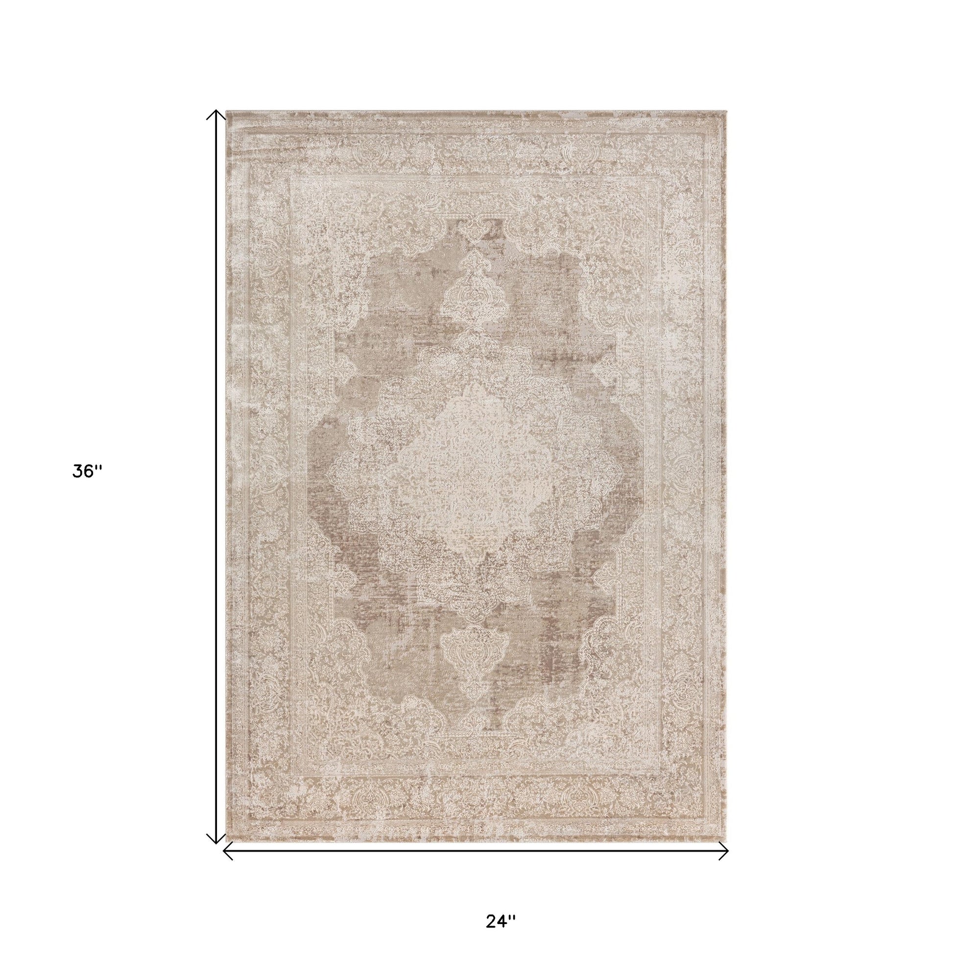 2' x 3' Beige and Ivory Medallion Area Rug