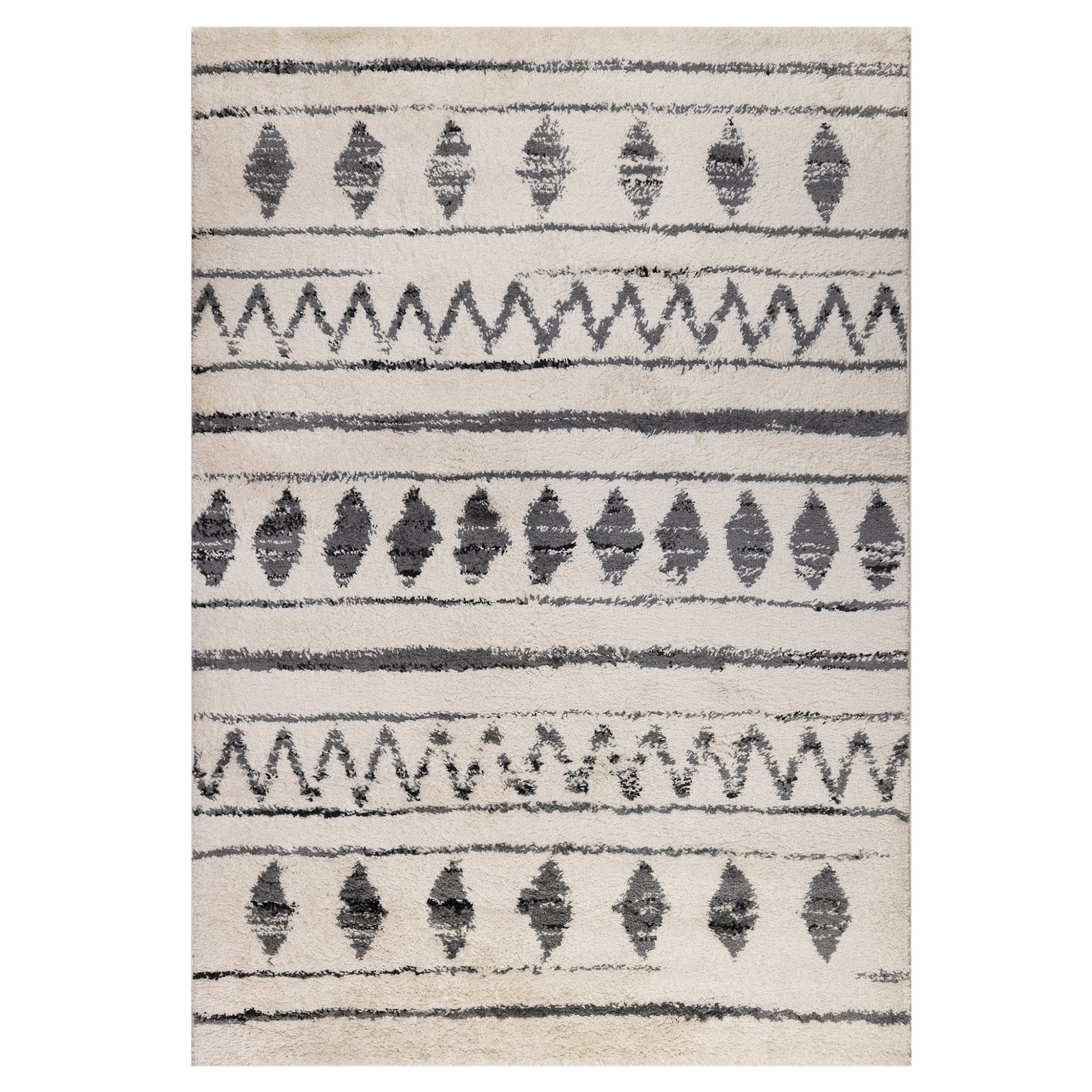 This 2-foot x 3-foot black and off white geometric shag area rug, is a great way to add warmth to a room. This rectangle shaped rug features a geometric design in black and off white to give it visual interest. A classic shape marries with good looking design for your space ideal for spaces with kids and pets, this rug is stain resistant to help repel stains and spilled liquids. The retro shag construction of this luxurious rug will provide a soft and comfortable barrier to color tile and hardwood floors. Place this area rug against a hardwood or tile floor and it will enliven your living space with style and sophistication. 1.8-inch H x 24-inch W x 36-inch D