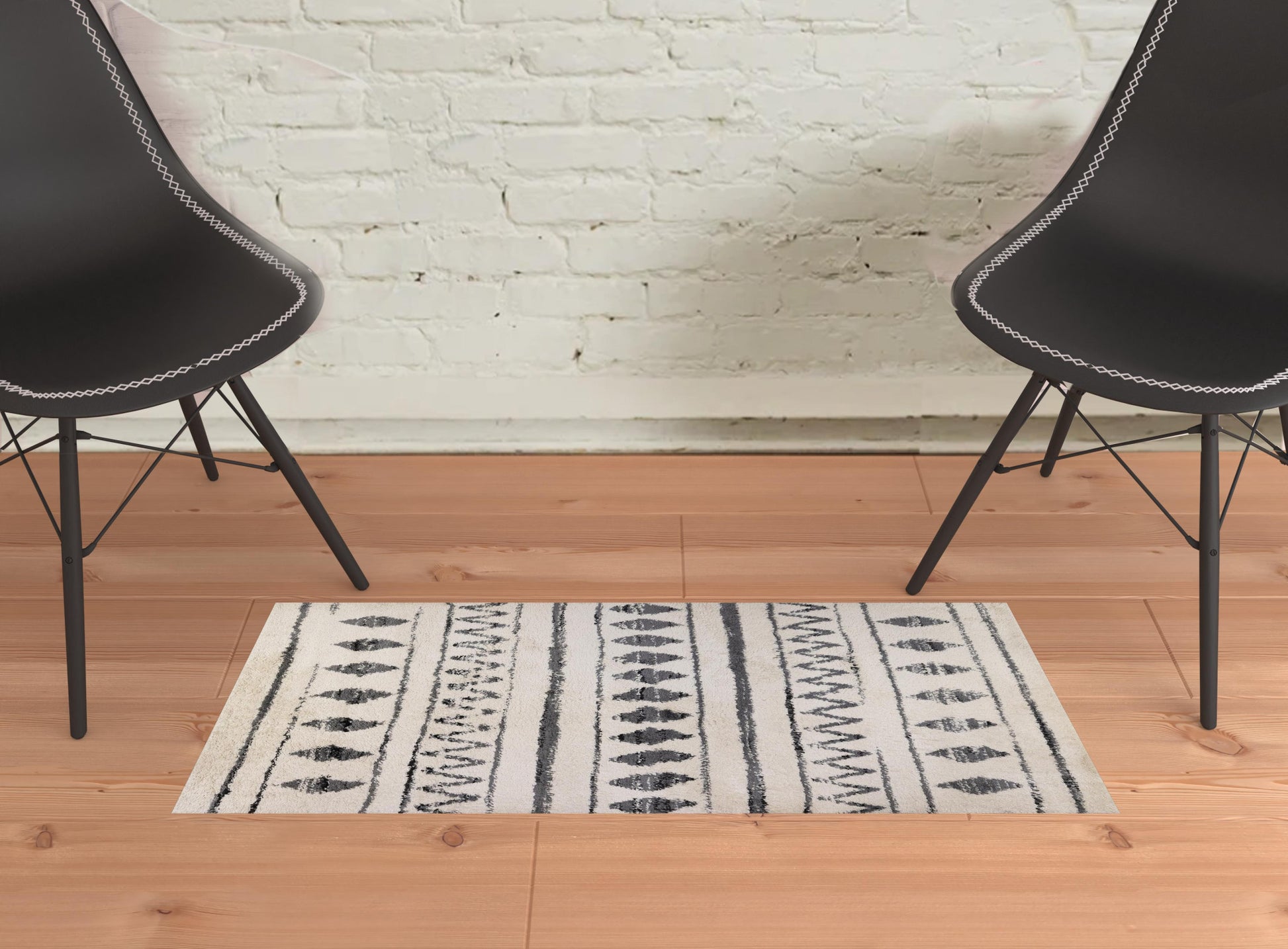 2' x 3' Black and Off White Geometric Shag Area Rug