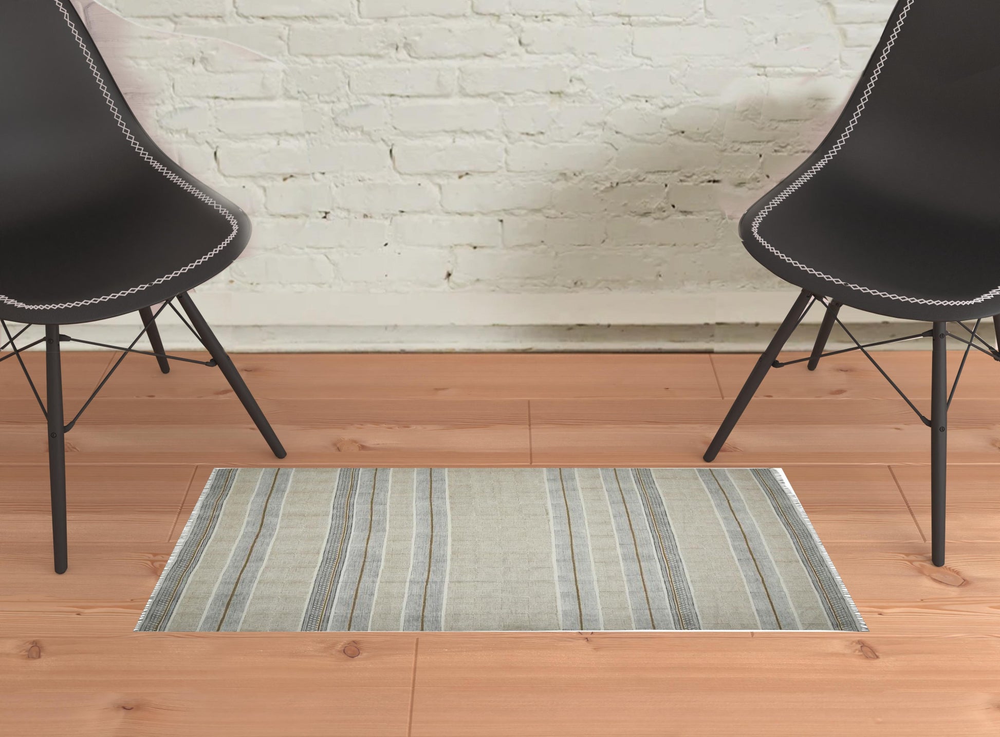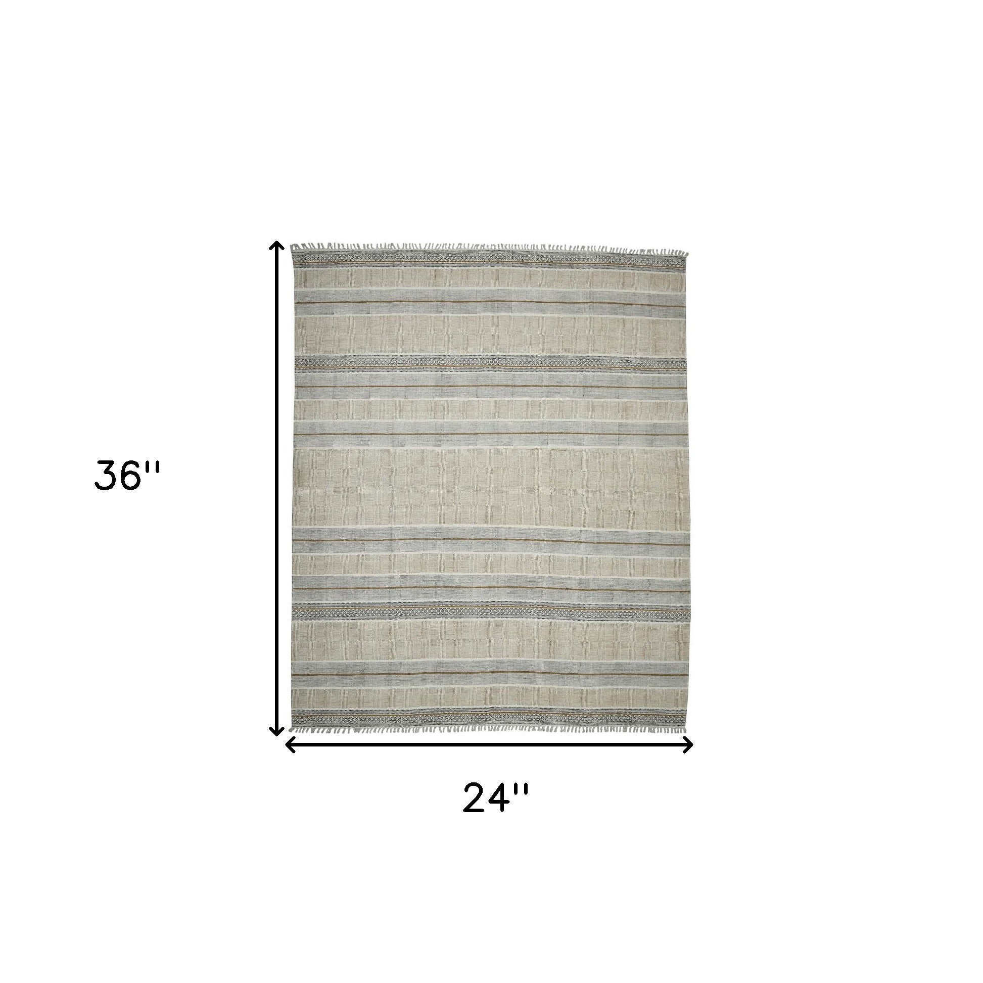 2' x 3' Blue and Brown Geometric Flatweave Handmade Distressed Area Rug with Fringe