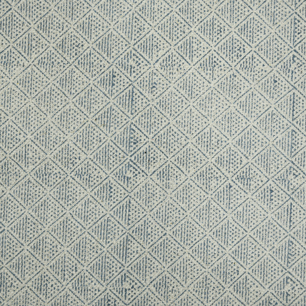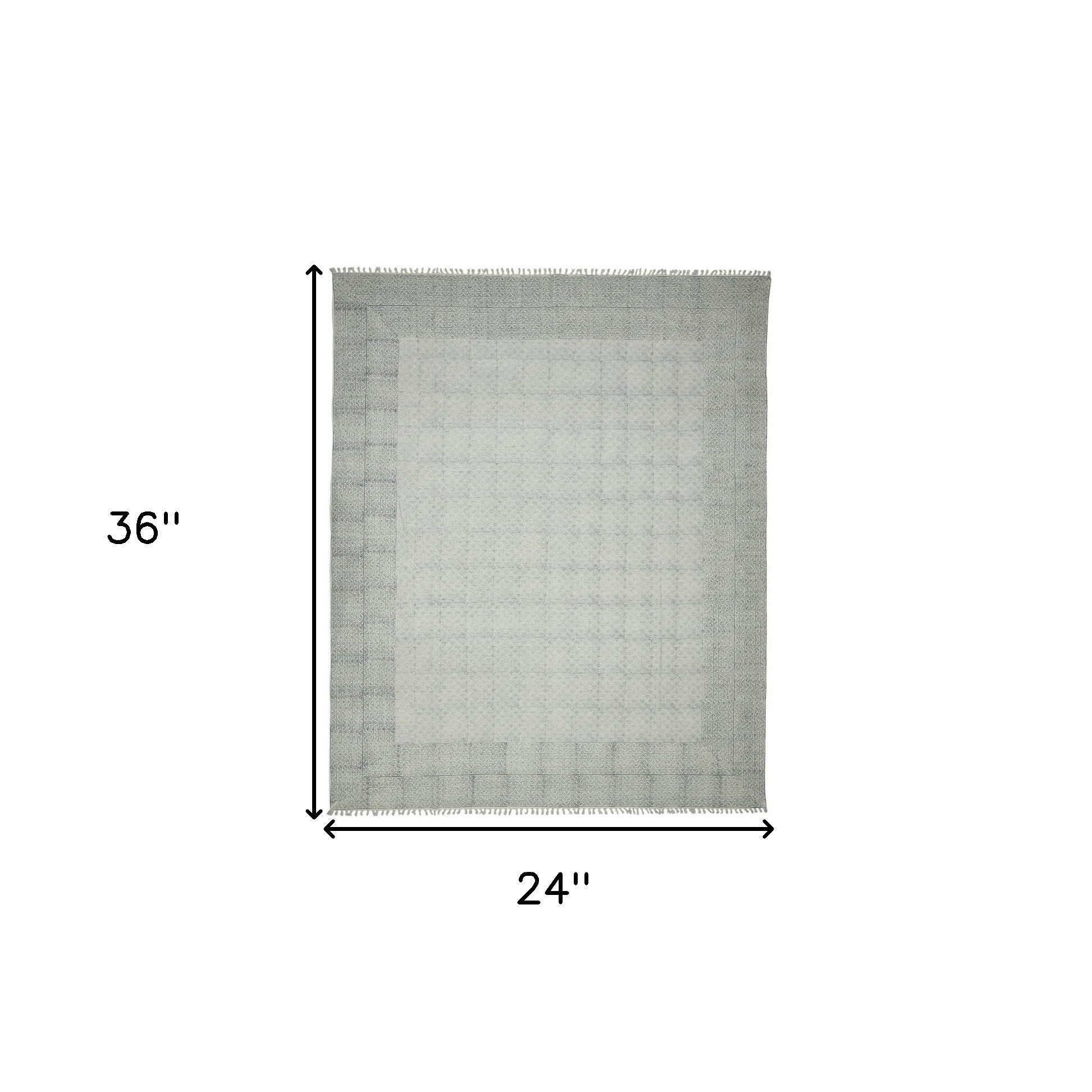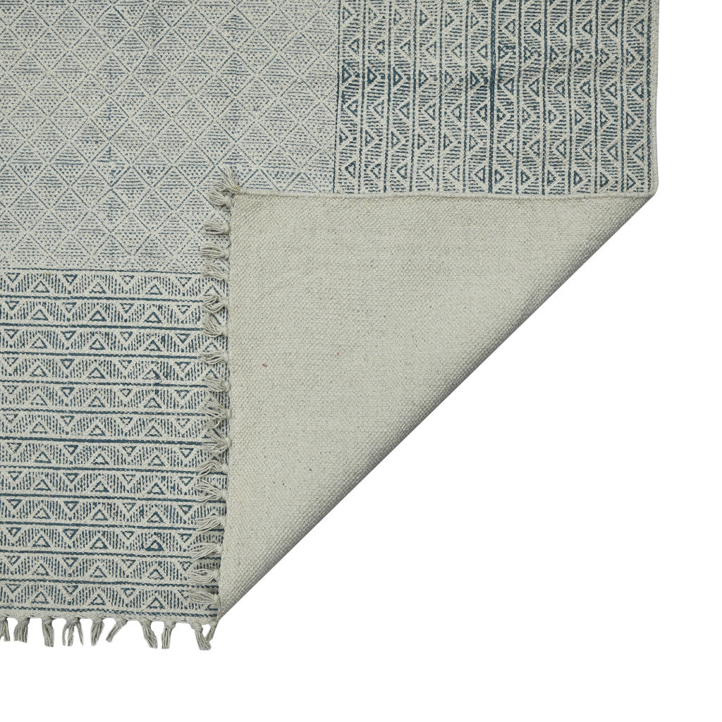 2' x 3' Blue and Ivory Geometric Flatweave Handmade Distressed Area Rug with Fringe