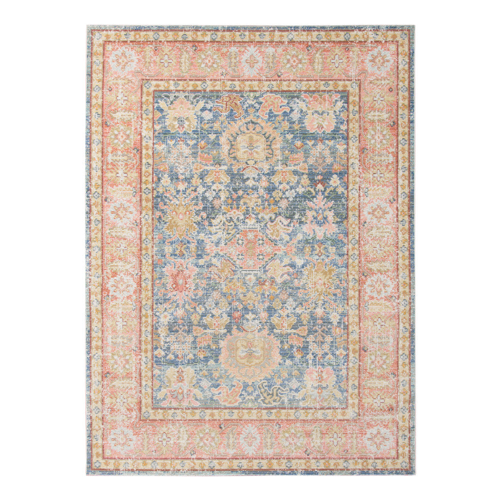 Set an inviting tone in your space with this 2-foot x 3-foot blue and pink oriental power loom distressed area rug. This rectangle shaped rug features a oriental design in blue and pink to give it visual interest. A classic shape marries with good looking design for your space area rugs help to give warmth and sense of home to your space. 0.08-inch H x 24-inch W x 36-inch D