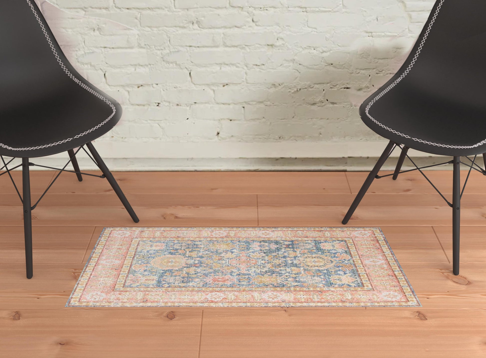 2' x 3' Blue and Pink Oriental Power Loom Distressed Area Rug