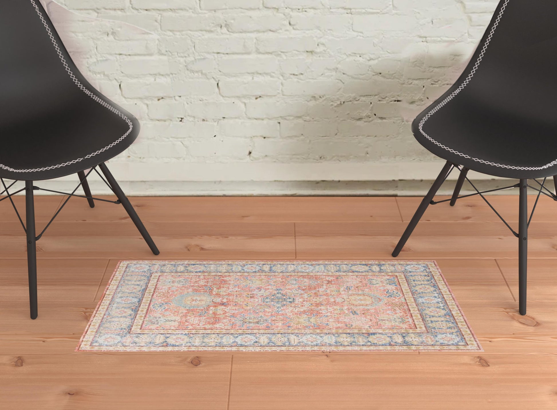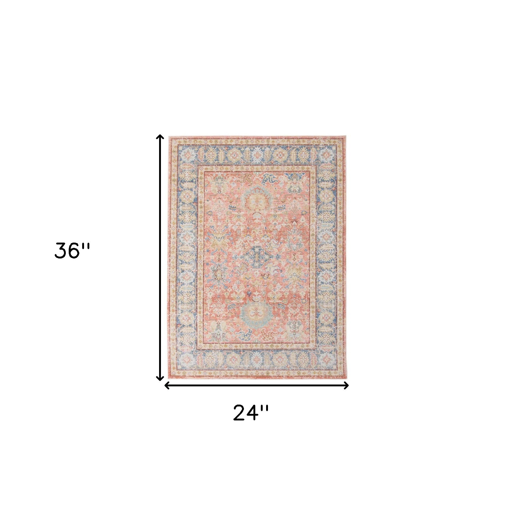 2' x 3' Blue and Pink Oriental Power Loom Distressed Area Rug