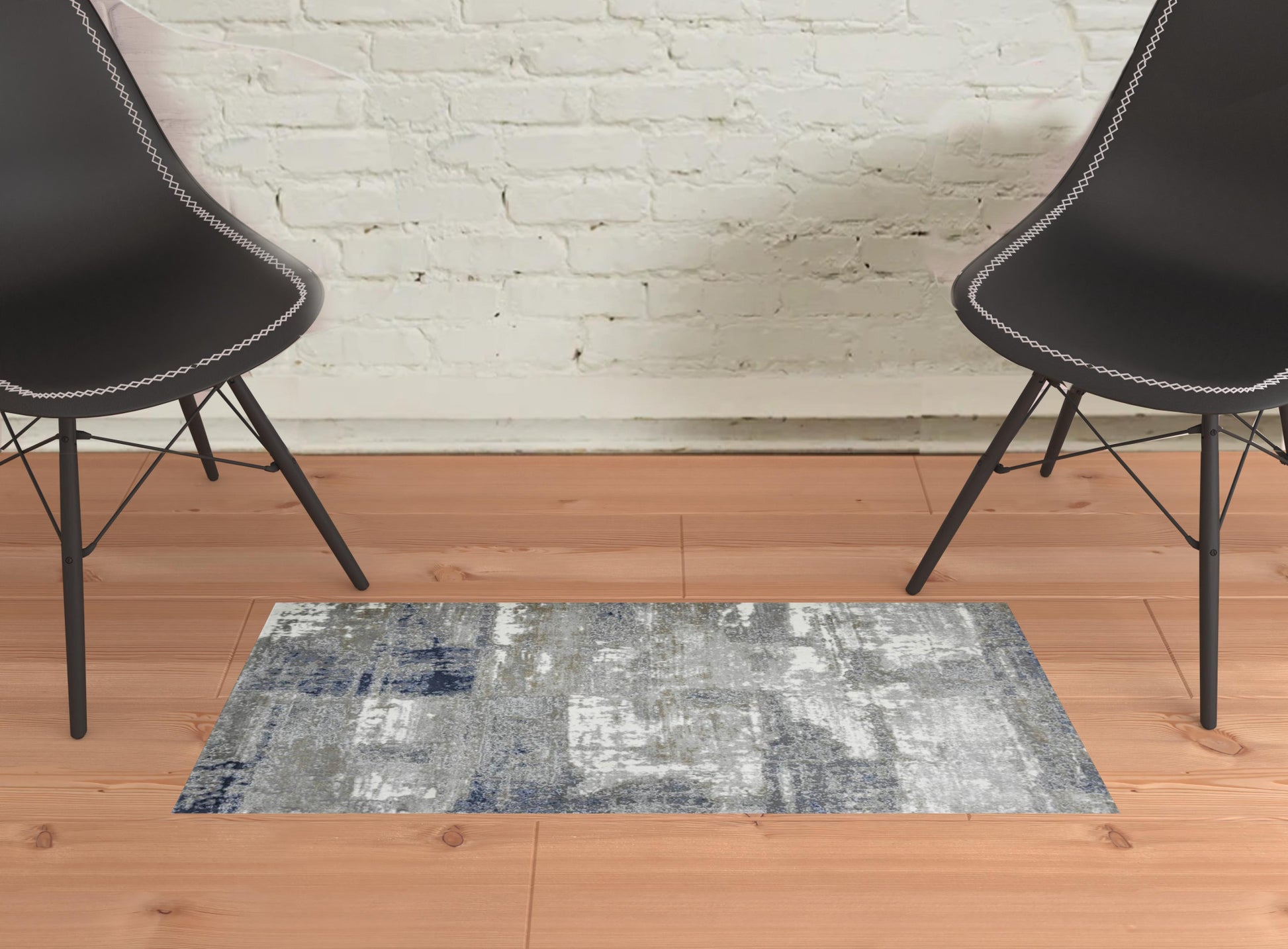 2' x 3' Gray and Blue Abstract Power Loom Area Rug