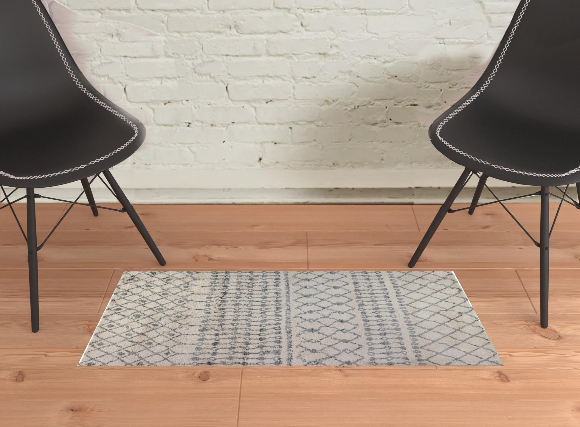 2' x 3' Gray and Ivory Geometric Shag Area Rug