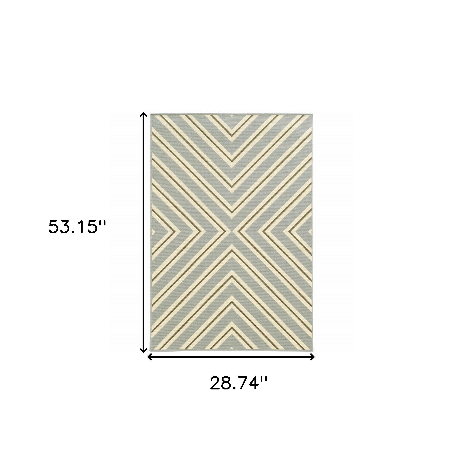 2' X 4' Gray and Ivory Geometric Stain Resistant Indoor Outdoor Area Rug