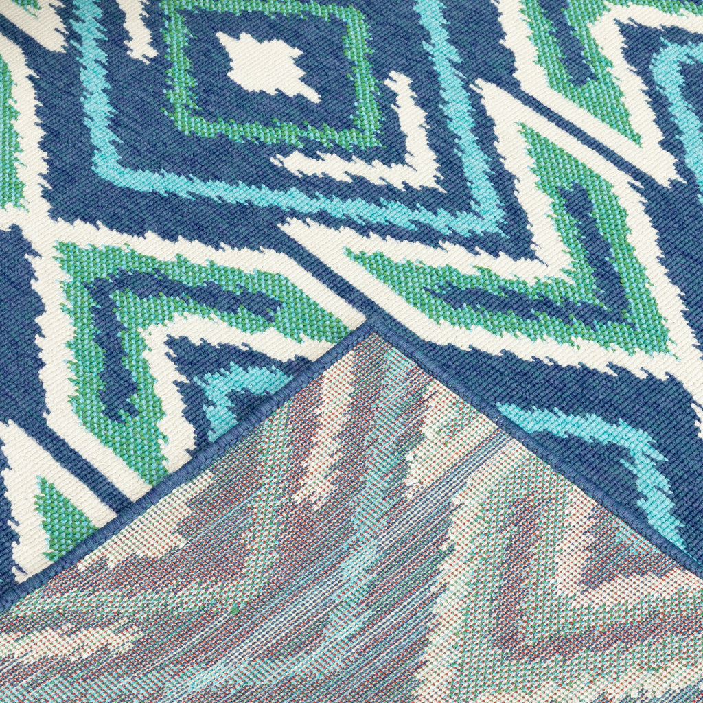 2' X 8' Blue and Ivory Geometric Stain Resistant Indoor Outdoor Area Rug