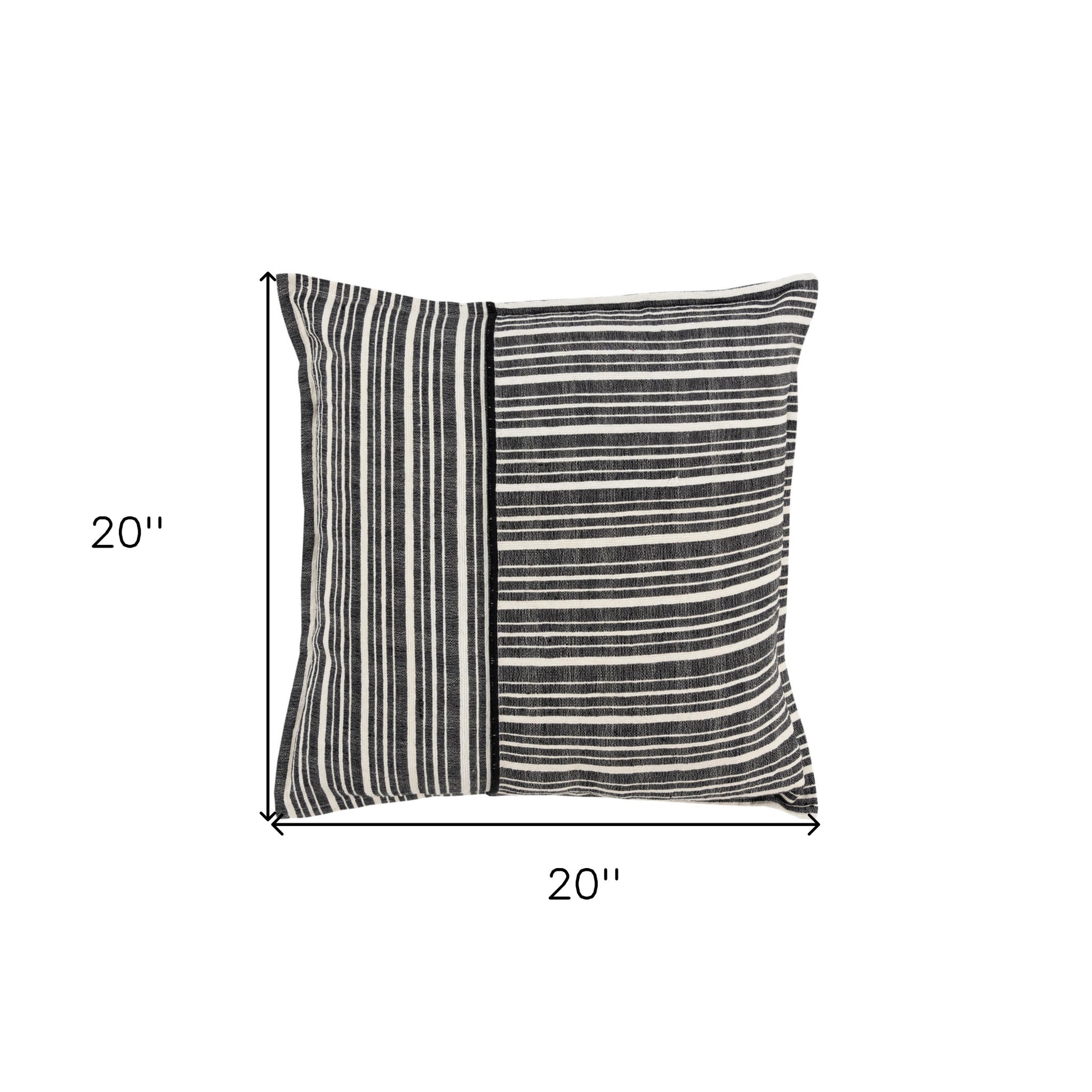 Bring a bit of fashion and zip to your space with this eye-catching and comfy 20-inch black and white cotton pillow with embroidery edges. This black and white hued piece represents quality construction, expertly made from premium 100% cotton that is not only long lasting but super soft to the touch as well. Super soft and built to hold its shape, this polyester pillow is a great option. Great to use on its own or mix with other decorations for the perfect look. A great decorative accessory for your favorite chair, to accent your sofa, or to use as part of your bed ensemble. 20-inch H x 20-inch W x 6.25-inch D