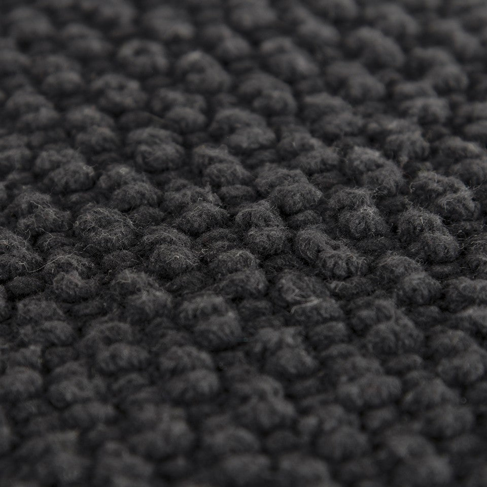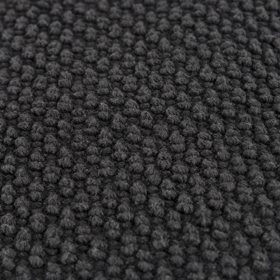Layer your living room with this Black Nubby Textured Modern Throw Pillow on the sofa or couch, and it will effortlessly complement its surroundings without compromising style and sophistication. The enchanting black base with rich nubby texture adds dimension to the piece while ensuring a luxurious feel on the touch. Hand-loomed with high-quality cotton fabric to guarantee enhanced durability while the soft polyfill insert gives the piece a fluffy look to support your neck and back. The knife-edge adds to the crisp and clean corner, making it an ideal fit for a variety of style genres. The solid cotton back bears a hidden zipper closure for ease of fill and cleaning. Bring home this beautifully textured throw pillow that can be seamlessly used as a stand-alone piece or paired with multiple patterned decors. 20” x 20” x 6.25”