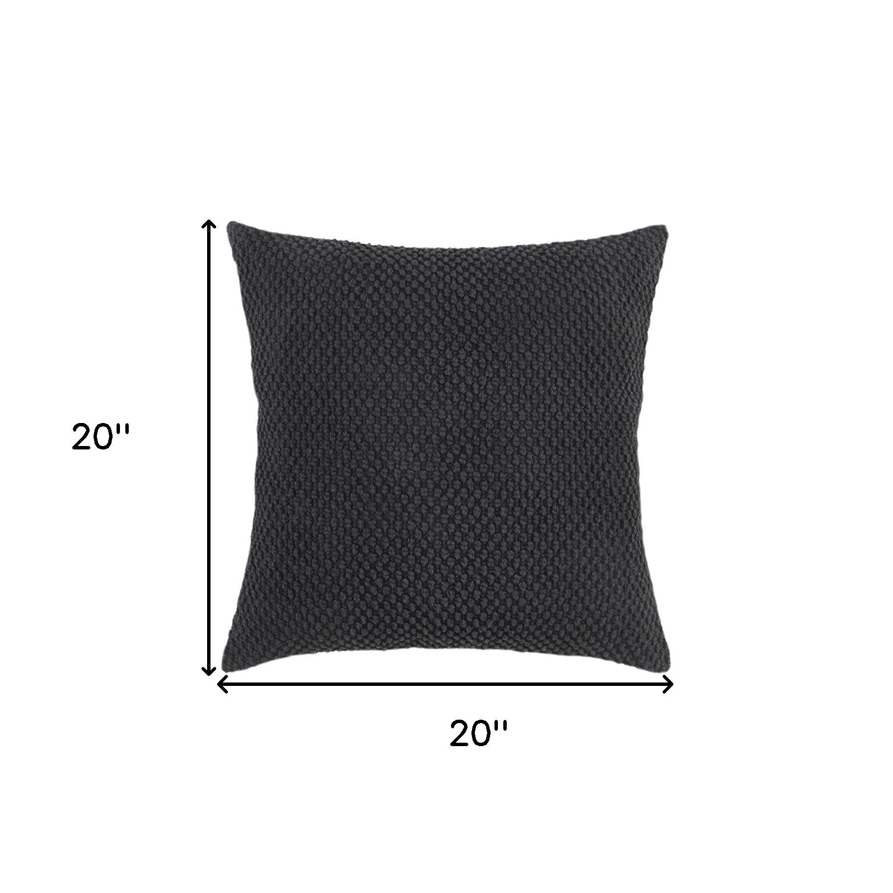 20" Black Nubby Textured Modern Throw Pillow