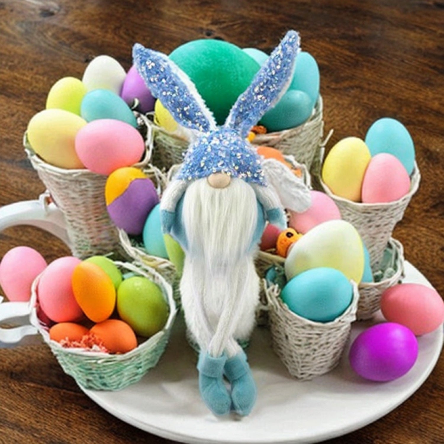 Bring some sizzle to your space with this eye-catching 20-inch blue and white fabric bunny rabbit sitting gnome. This charming decorative accent is expertly made of high grade fabric in a blue and white color combination. Known to bring good luck and good vibes, this soft sitting gnome with cute bunny ears is a novel and chic way to accent your space. It's a perfect addition for those who love to decorate with some whimsical accents. 20.1-inch H x 4.5-inch W x 5.9-inch D