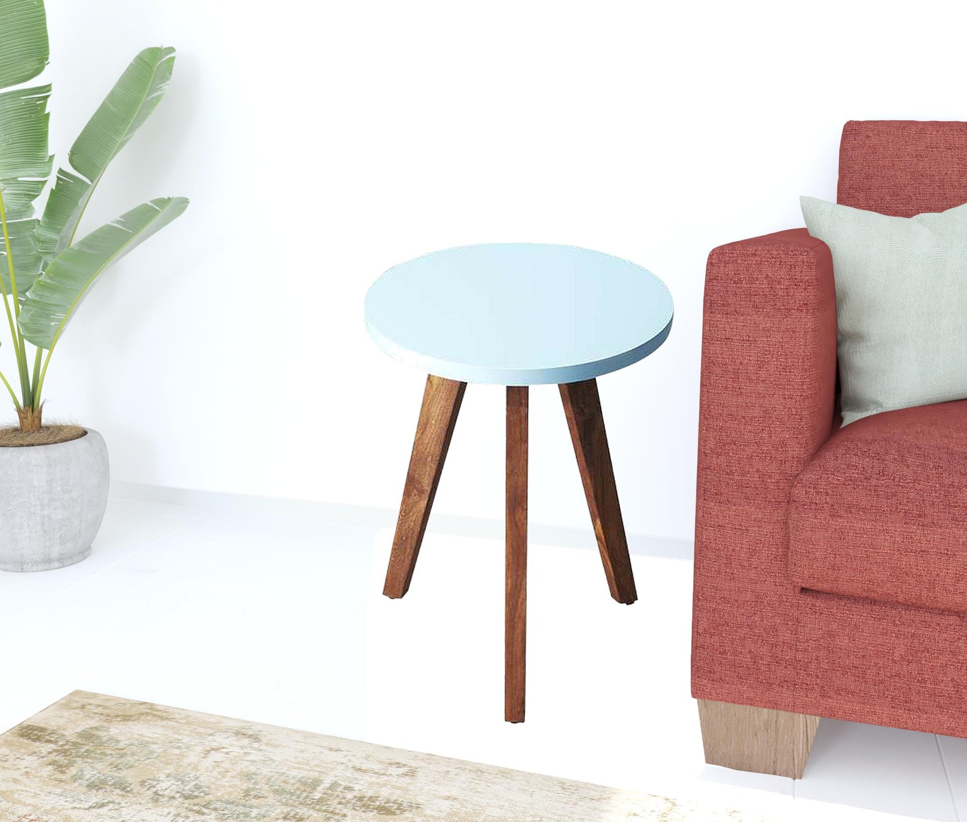 Show off your exquisite taste with this 20" brown and white manufactured wood round end table. The brown coloration of the high quality solid wood base marries nicely with the white manufactured wood top. Complete with a purposefully distressed finish, this table has an aged, vintage, and rustic feel. An ideal location for placing your snacks and drinks, and a place to keep your lamp, frames, or other accessories. This versatile table is a great accent for most any room. 20" H x 16" W x 16" D