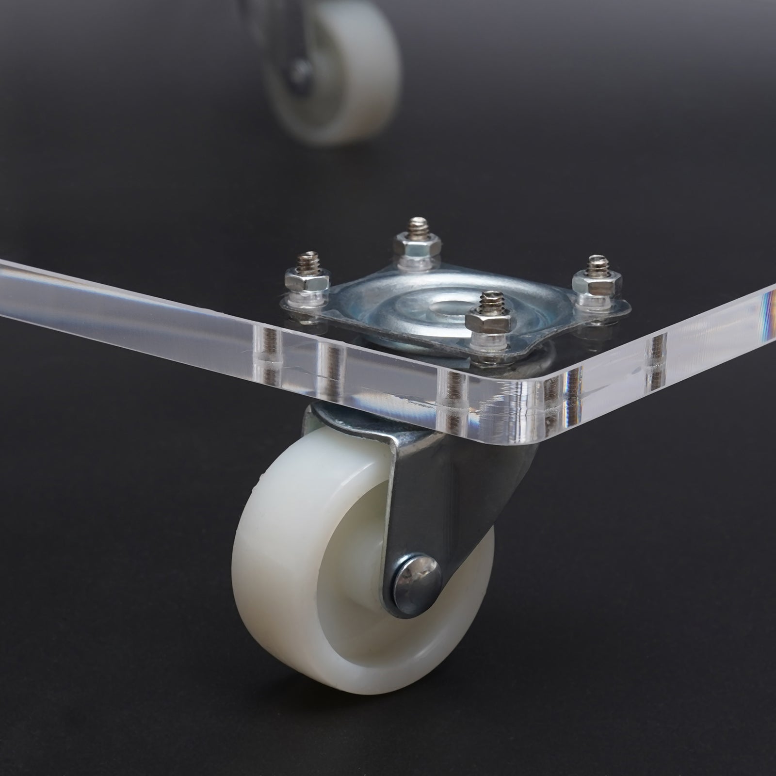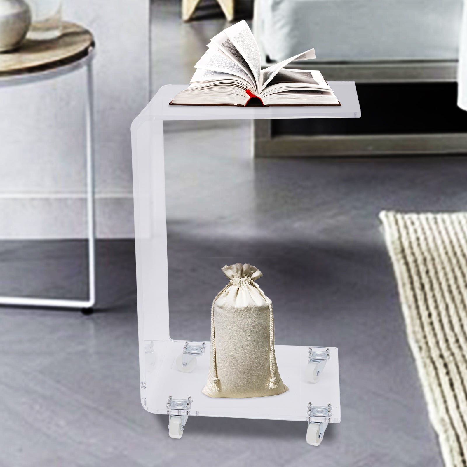 Our 20-inch clear acrylic rolling nightstand will compliment your bed beautifully. Robust in design, the bed side table has been expertly crafted from plastic. The unsung hero of the bedroom, this nightstand is perfect for keeping a glass of water, lamp, alarm clock, jewelry, and more, close by and easily accessible. Look no further than this nightstand to accommodate all your needs and upgrade the style of your bedroom. 20.47-inch H x 12.99-inch W x 13.98-inch D