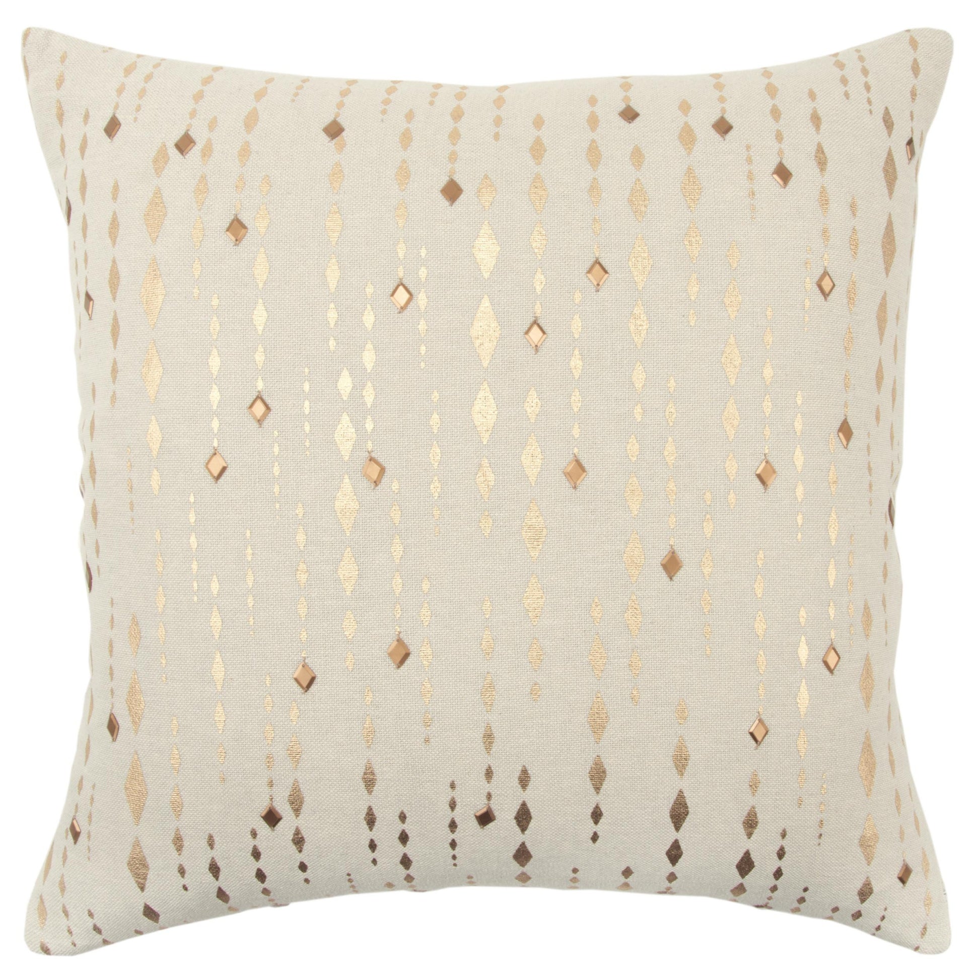 Bring a bit of fashion and zip to your space with this eye-catching and comfy 20-inch gold and ivory cotton pillow with beads edges. The gold and ivory coloring of the soft and long lasting 100% cotton will add dimension and texture to your space. This soft polyester pillow not only is decorative but made to be comfy and cozy all day long. Decorative throw pillows not only add color and dimension to your space but can be comfy and supportive when you are lounging and cuddling as well. A great decorative accessory for your favorite chair, to accent your sofa, or to use as part of your bed ensemble. 20-inch H x 20-inch W x 6.25-inch D
