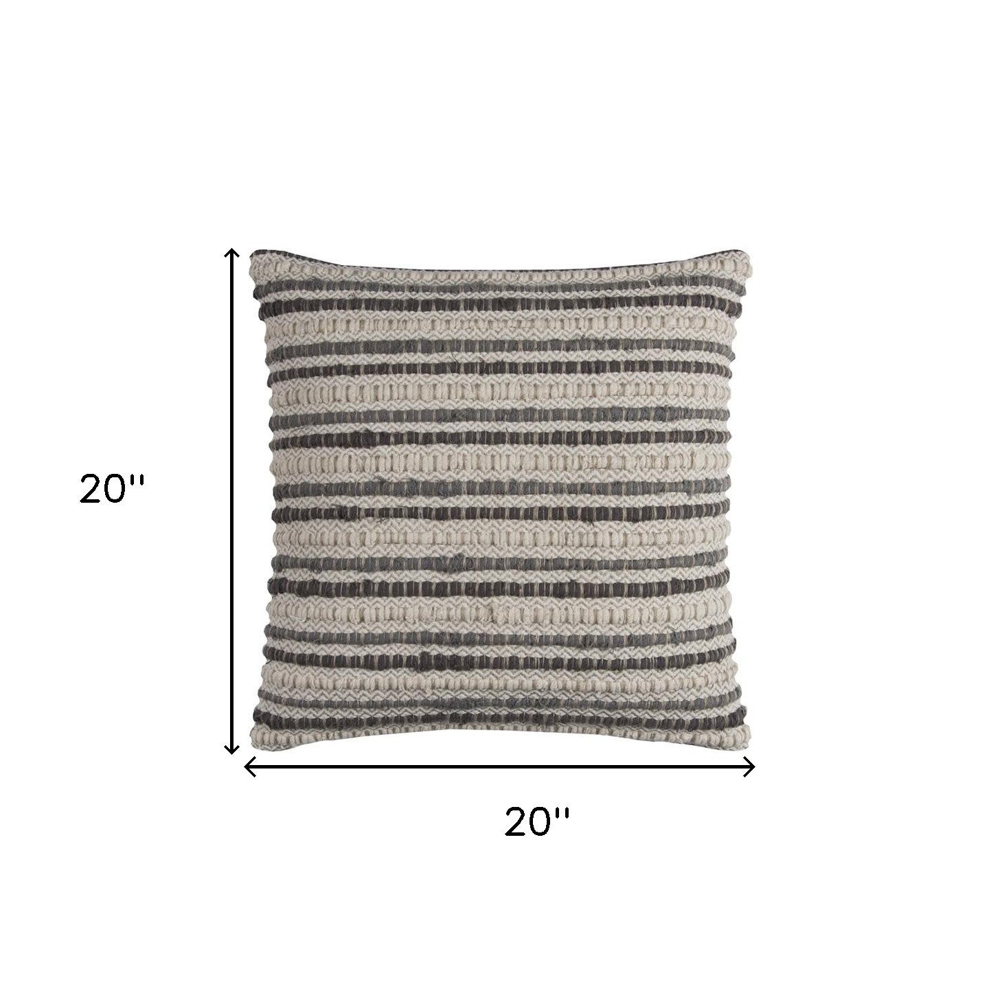 20" Gray Beige Nubby Texture Bands Throw Pillow