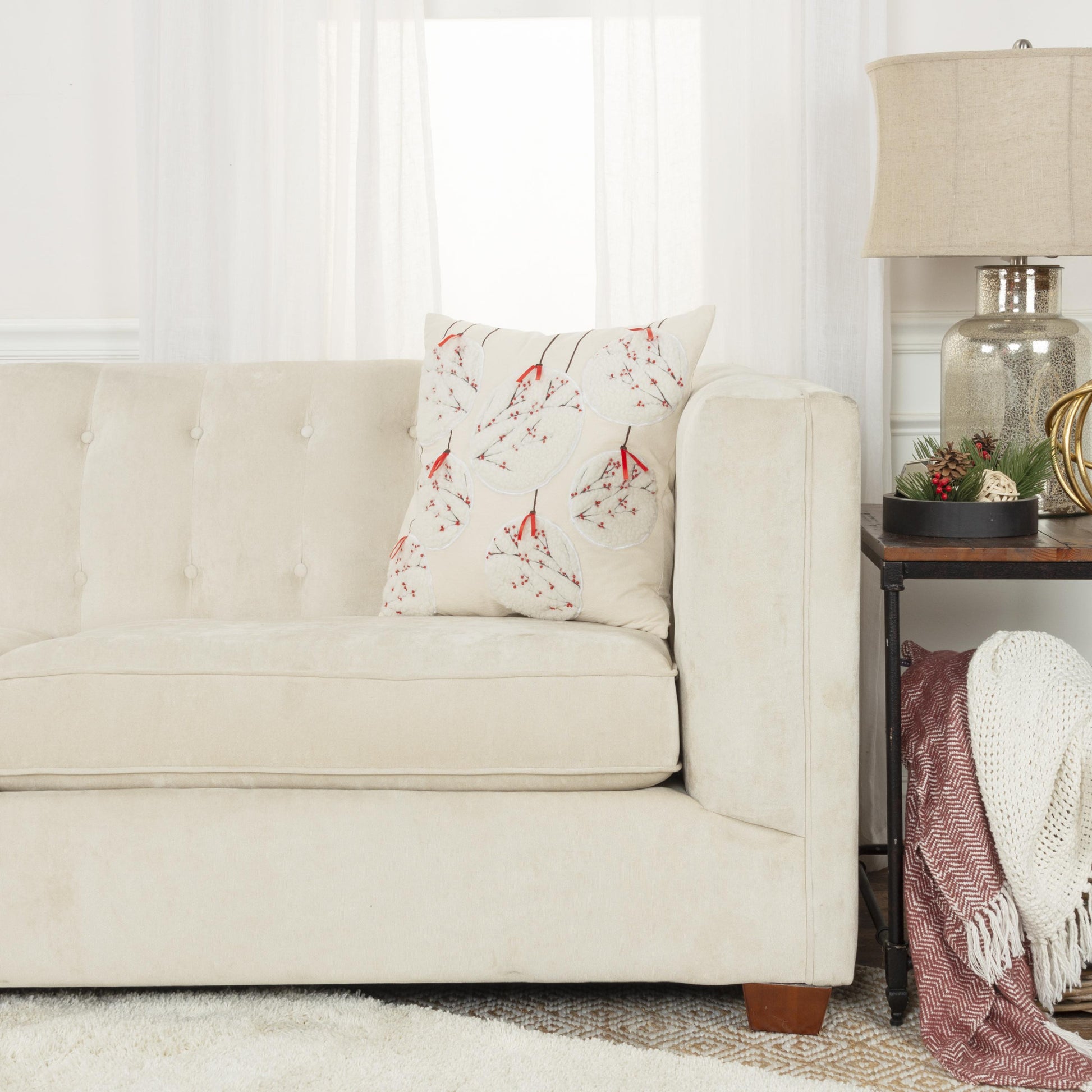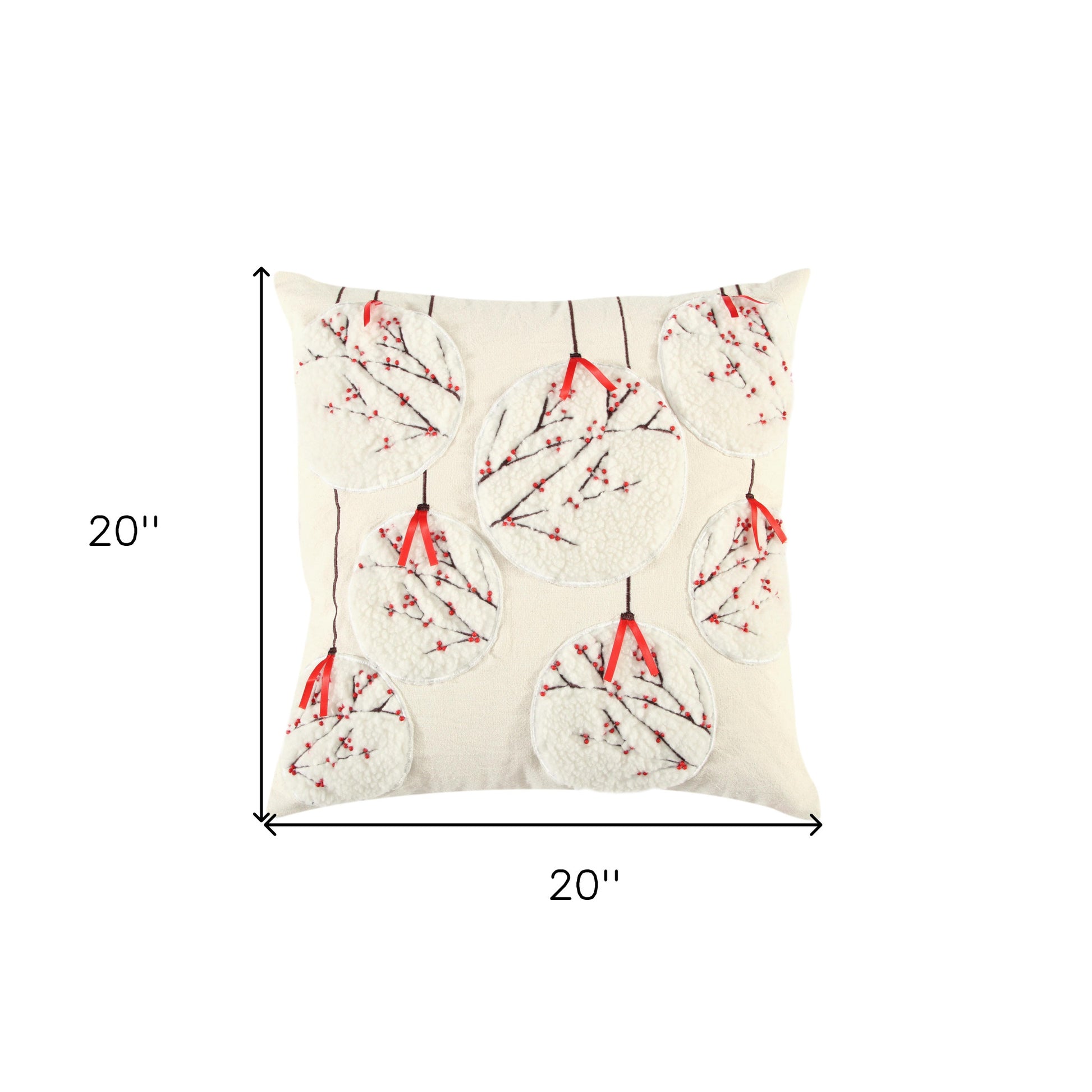Add some christmas cheer to your space with this 20-inch red and ivory christmas cotton pillow with applique, embroidery, beads edges. The red and ivory coloring of the soft and long lasting 100% cotton will add dimension and texture to your space. This soft polyester pillow not only is decorative but made to be comfy and cozy all day long. For anyone that loves to decorate or accent their space with color and texture. A great decorative accessory for your favorite chair, to accent your sofa, or to use as part of your bed ensemble. 20-inch H x 20-inch W x 6.25-inch D