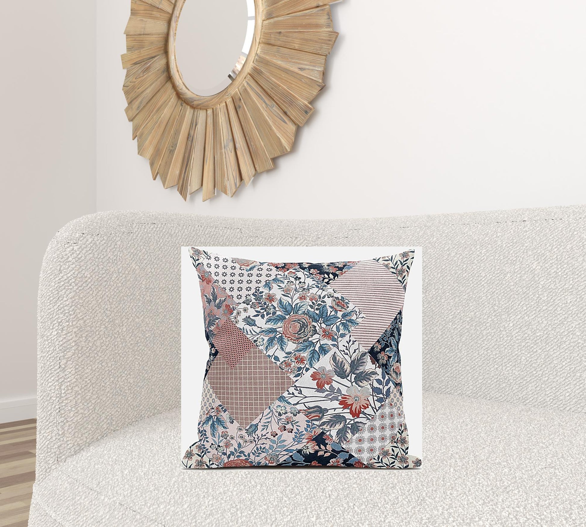 Accentuate a bohemian aesthetic into your home with this White Pink Floral Suede Throw Pillow that exhibits a subtle yet eye-catching composition to anchor your living space. The high-quality floral and geometric digital prints in light peachy pink and slate blue create a pleasant contrast over the white base, making this an ideal accent for a wide variety of interior settings. Crafted in the United States with premium suede fabric for softness and durability. The glossy sheen and luxurious texture of the suede offer a smooth and luxurious finish for ultimate style and comfort. This pillow is blown and closed with a high-quality polyfill insert for a plush appearance with extra fluffiness. Whether you want this throw pillow in your bedroom, living room, or sitting space, it will seamlessly blend in without overwhelming its surrounding. 20” x 20” x 5”