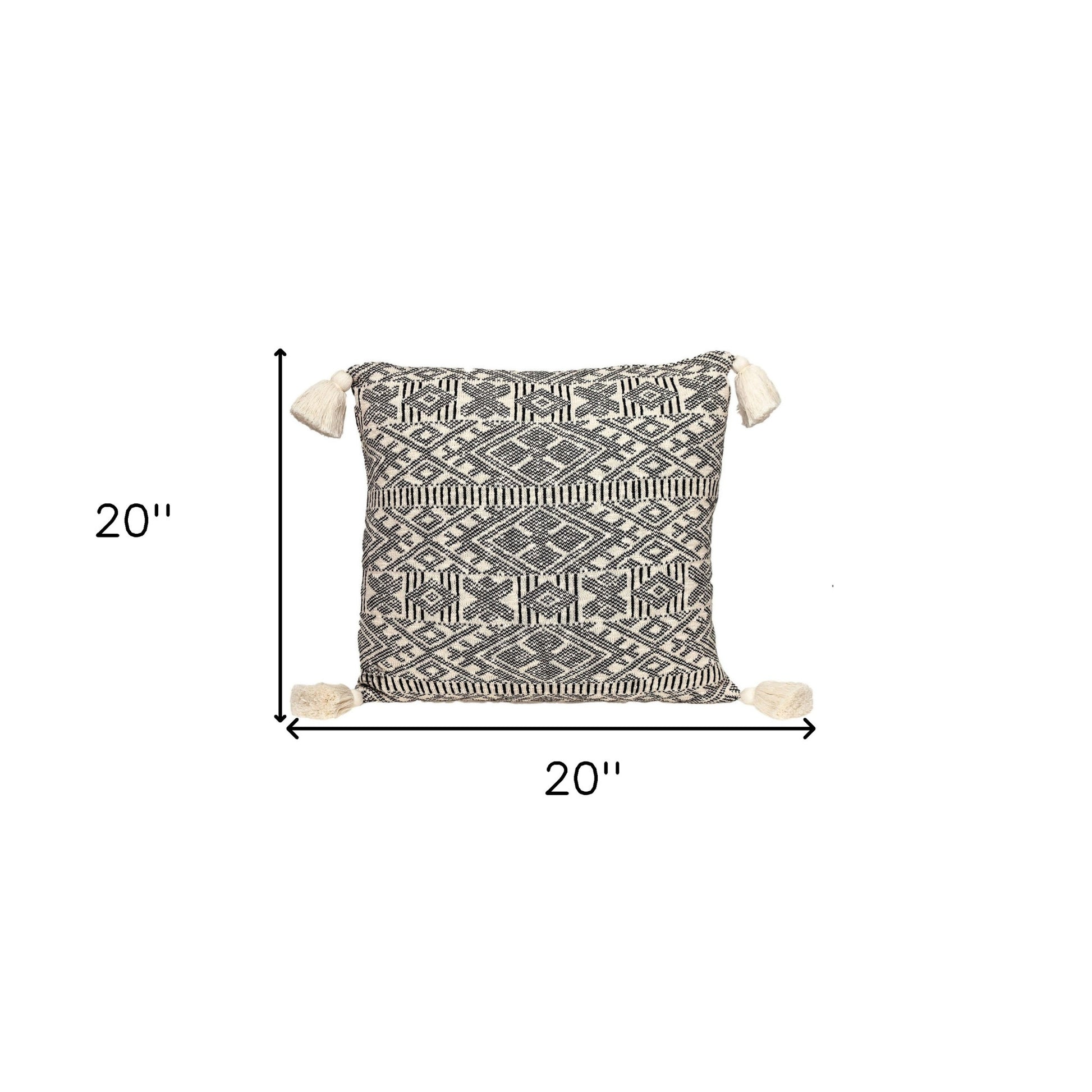 20" x 20" Black and Cream Bohemian Pattern Square Accent Throw Pillow with Tassel