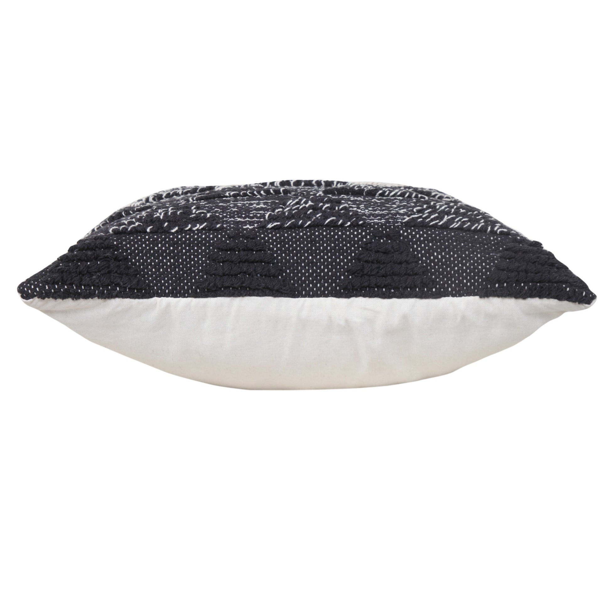 The 20" x 20" black and off-white 100% cotton geometric zippered pillow is the perfect decorative accessory for your home. This super soft decorative pillow is expertly made of high grade, long lasting 100% cotton in a black and off-white coloration. Great to use on its own or mix with other decorations for the perfect look. A great decorative accessory for your favorite chair, to accent your sofa, or to use as part of your bed ensemble. 4" H x 20" W x 20" D